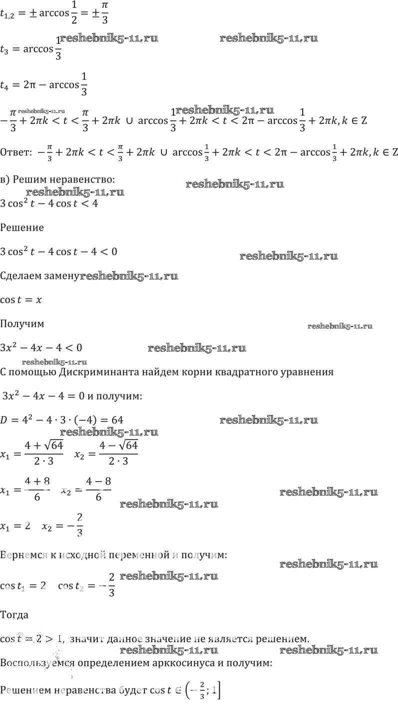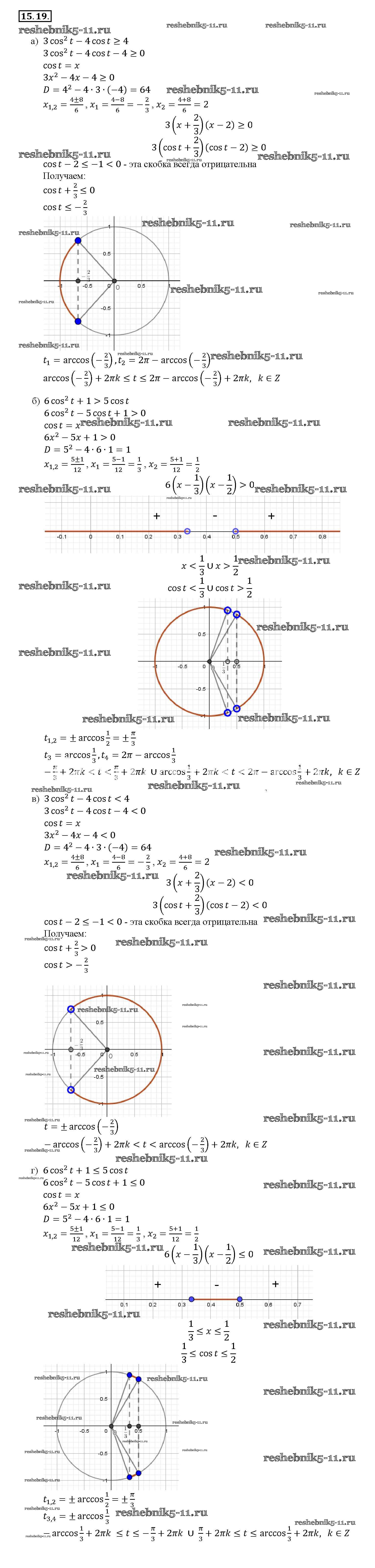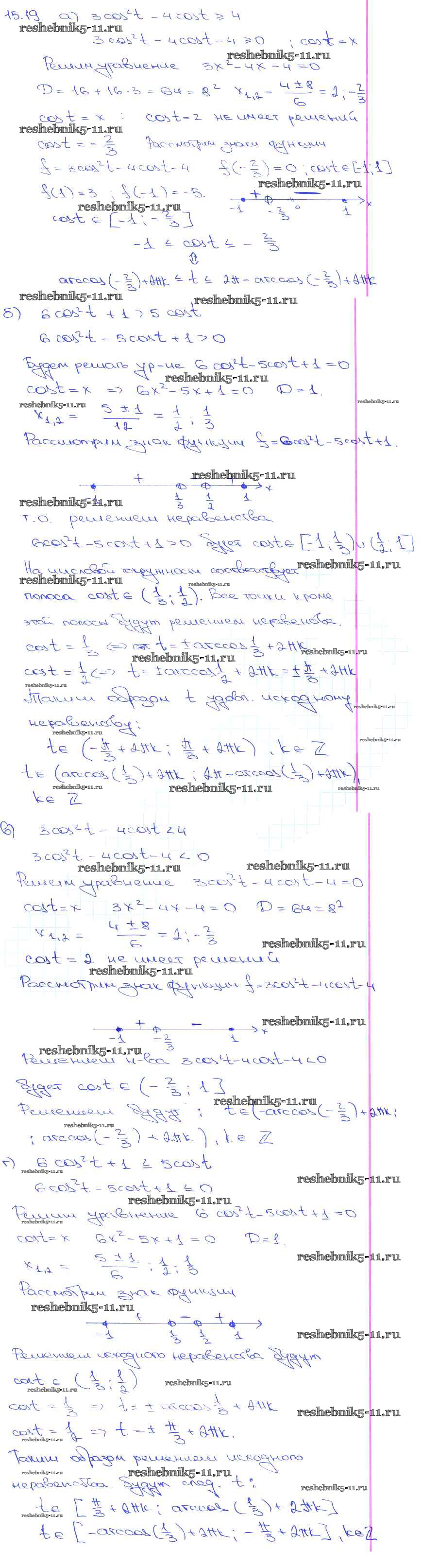 Готовая домашняя работа с ответами по Алгебре за 10, 11 класс Мордкович, Денищева, Корешкова, Мишустина, Семёнов, Тульчинская Задачник Базовый уровень Часть 2 Мнемозина 2015 ФГОС - §15. Арккосинус. Решение уравнения cos t = a 15. 19