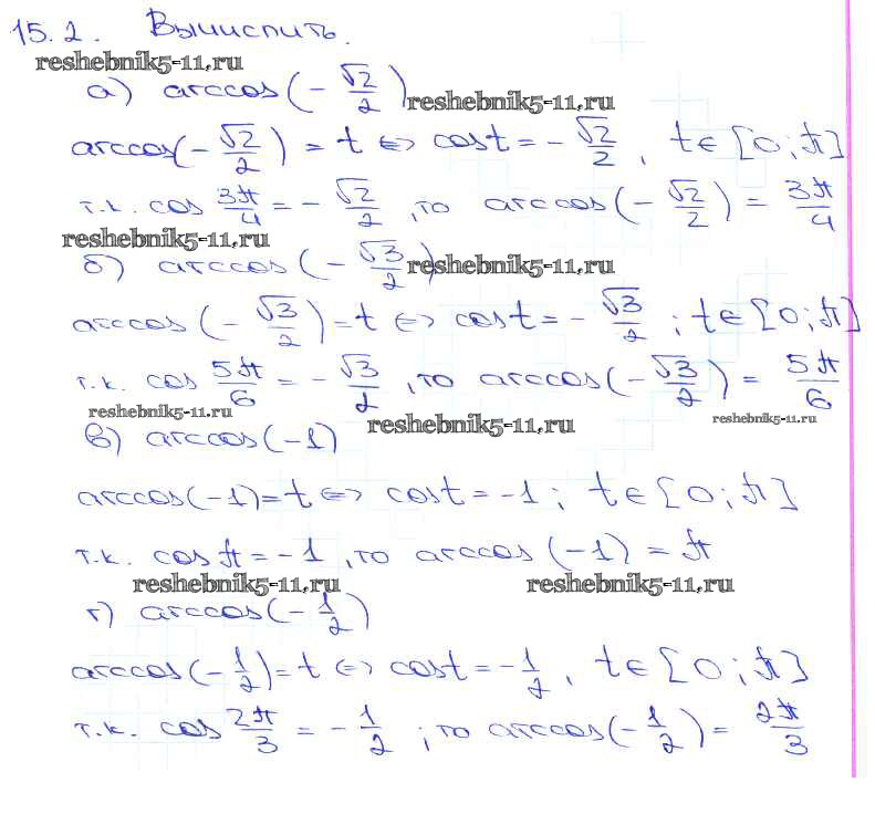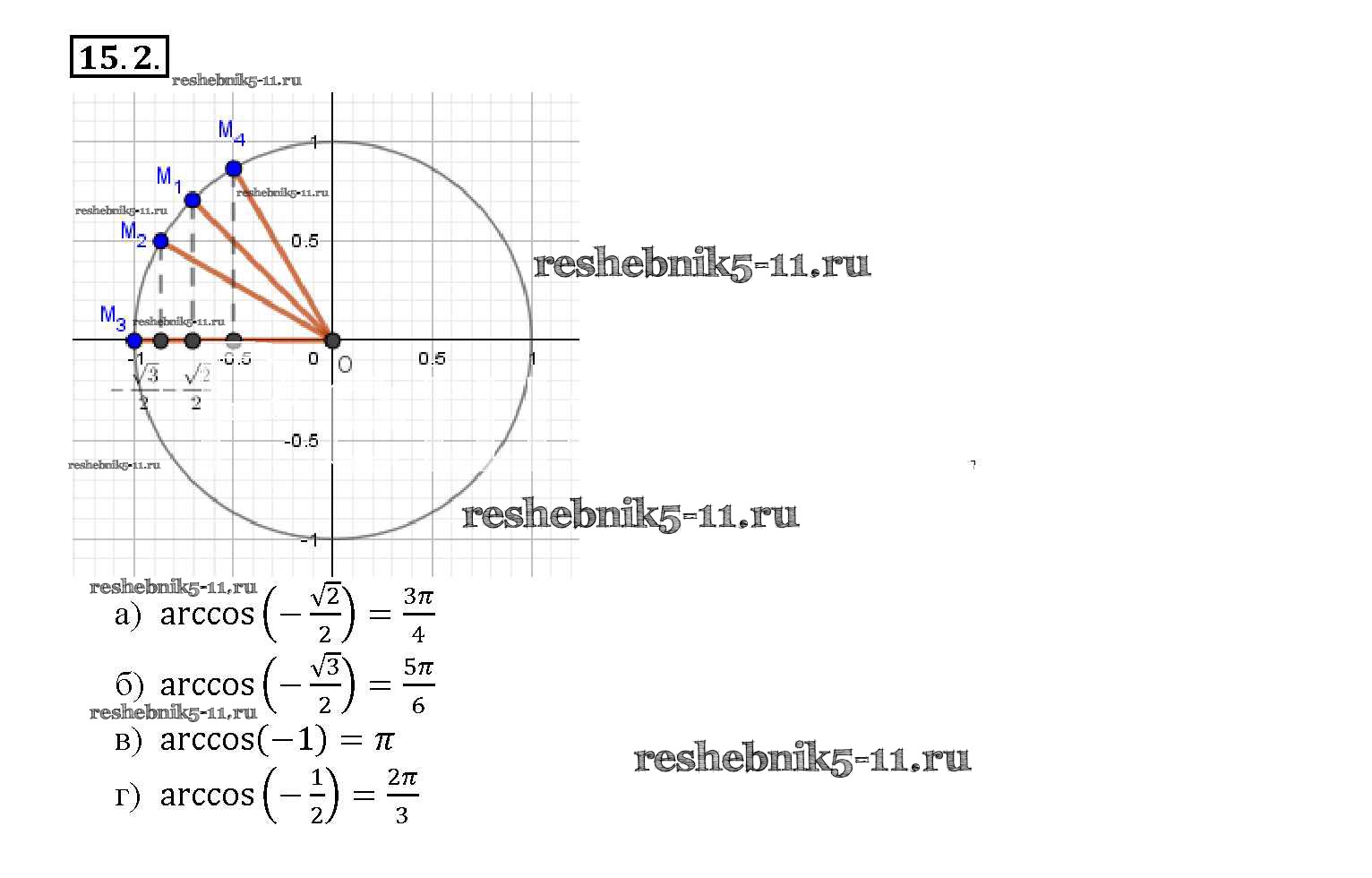 Готовая домашняя работа с ответами по Алгебре за 10, 11 класс Мордкович, Денищева, Корешкова, Мишустина, Семёнов, Тульчинская Задачник Базовый уровень Часть 2 Мнемозина 2015 ФГОС - §15. Арккосинус. Решение уравнения cos t = a 15. 2
