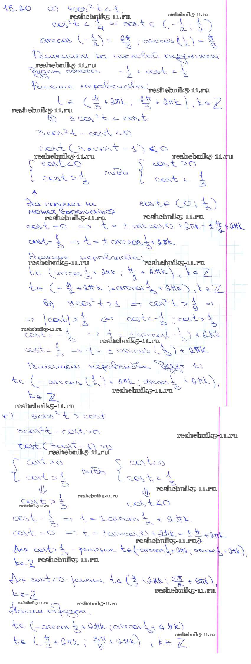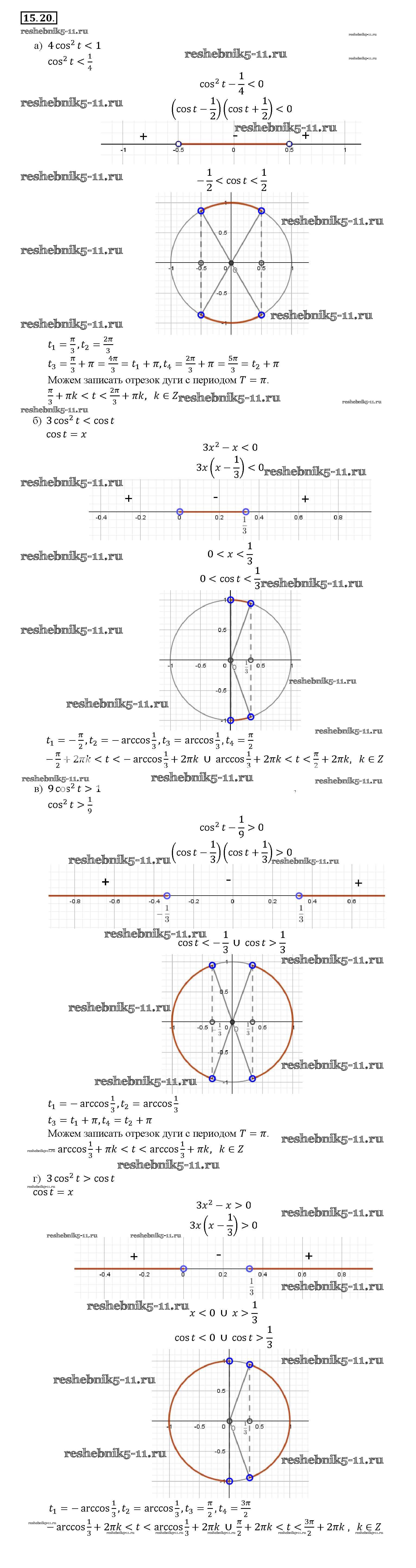 Готовая домашняя работа с ответами по Алгебре за 10, 11 класс Мордкович, Денищева, Корешкова, Мишустина, Семёнов, Тульчинская Задачник Базовый уровень Часть 2 Мнемозина 2015 ФГОС - §15. Арккосинус. Решение уравнения cos t = a 15. 20