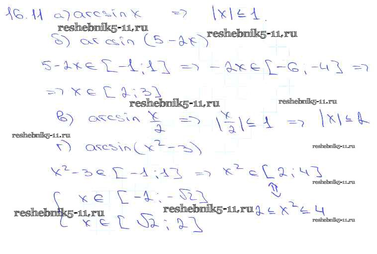 Готовая домашняя работа с ответами по Алгебре за 10, 11 класс Мордкович, Денищева, Корешкова, Мишустина, Семёнов, Тульчинская Задачник Базовый уровень Часть 2 Мнемозина 2015 ФГОС - §16. Арксинус. Решение уравнения sin t = a 16. 11