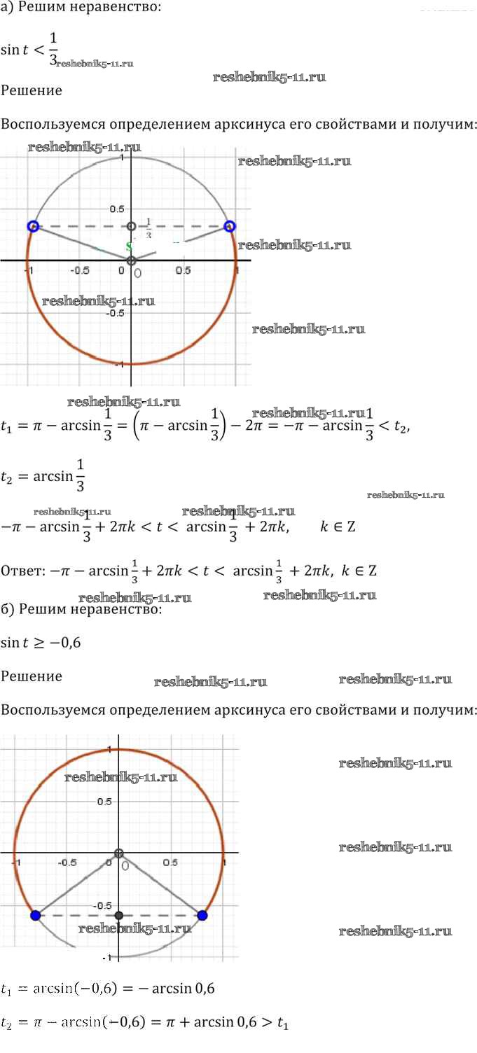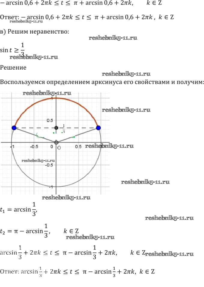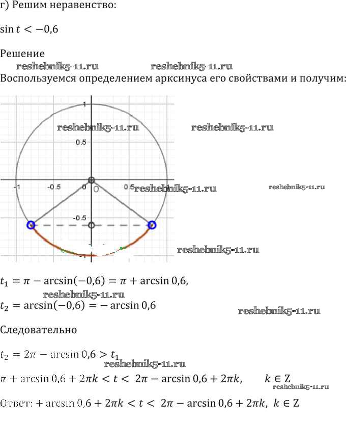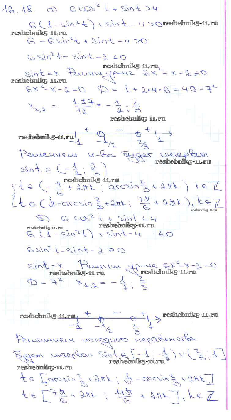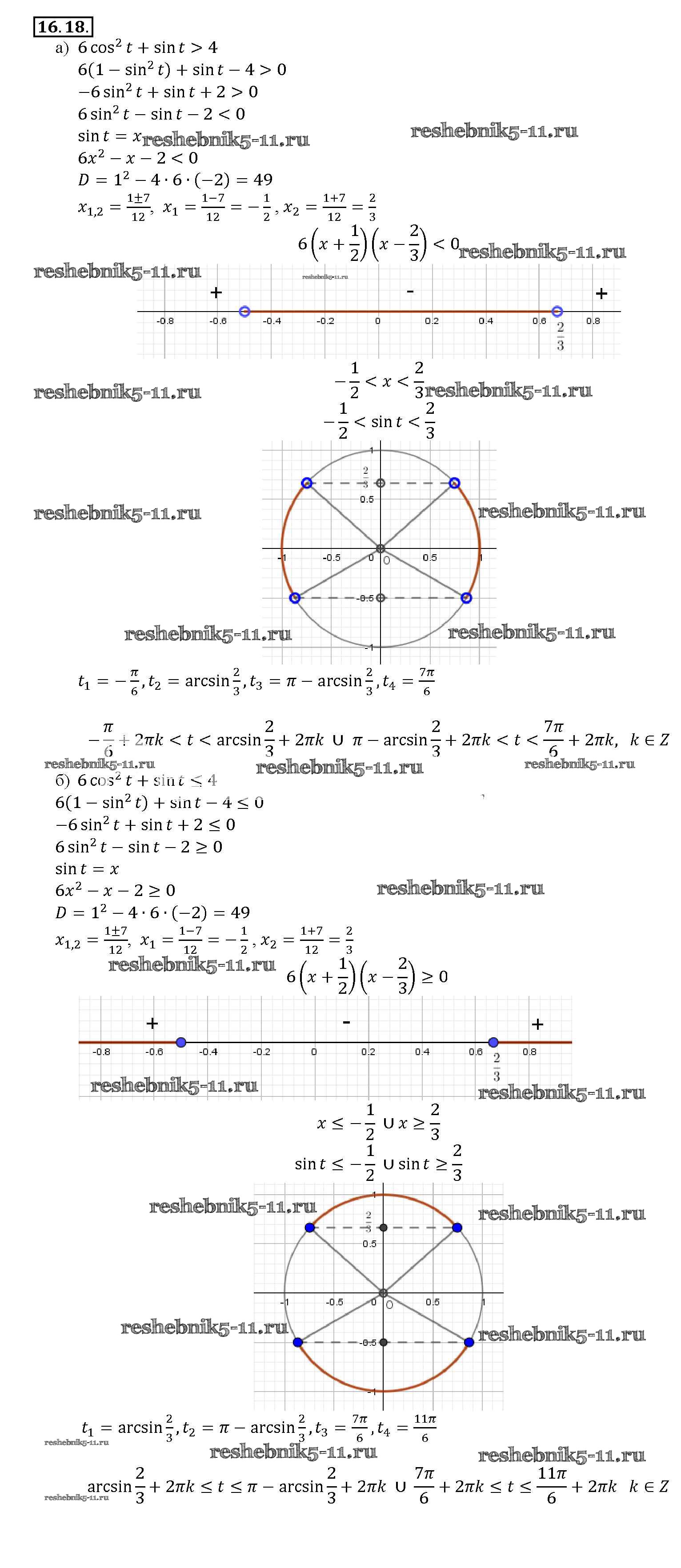 Готовая домашняя работа с ответами по Алгебре за 10, 11 класс Мордкович, Денищева, Корешкова, Мишустина, Семёнов, Тульчинская Задачник Базовый уровень Часть 2 Мнемозина 2015 ФГОС - §16. Арксинус. Решение уравнения sin t = a 16. 18