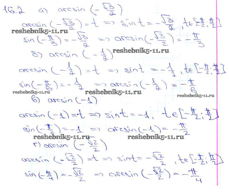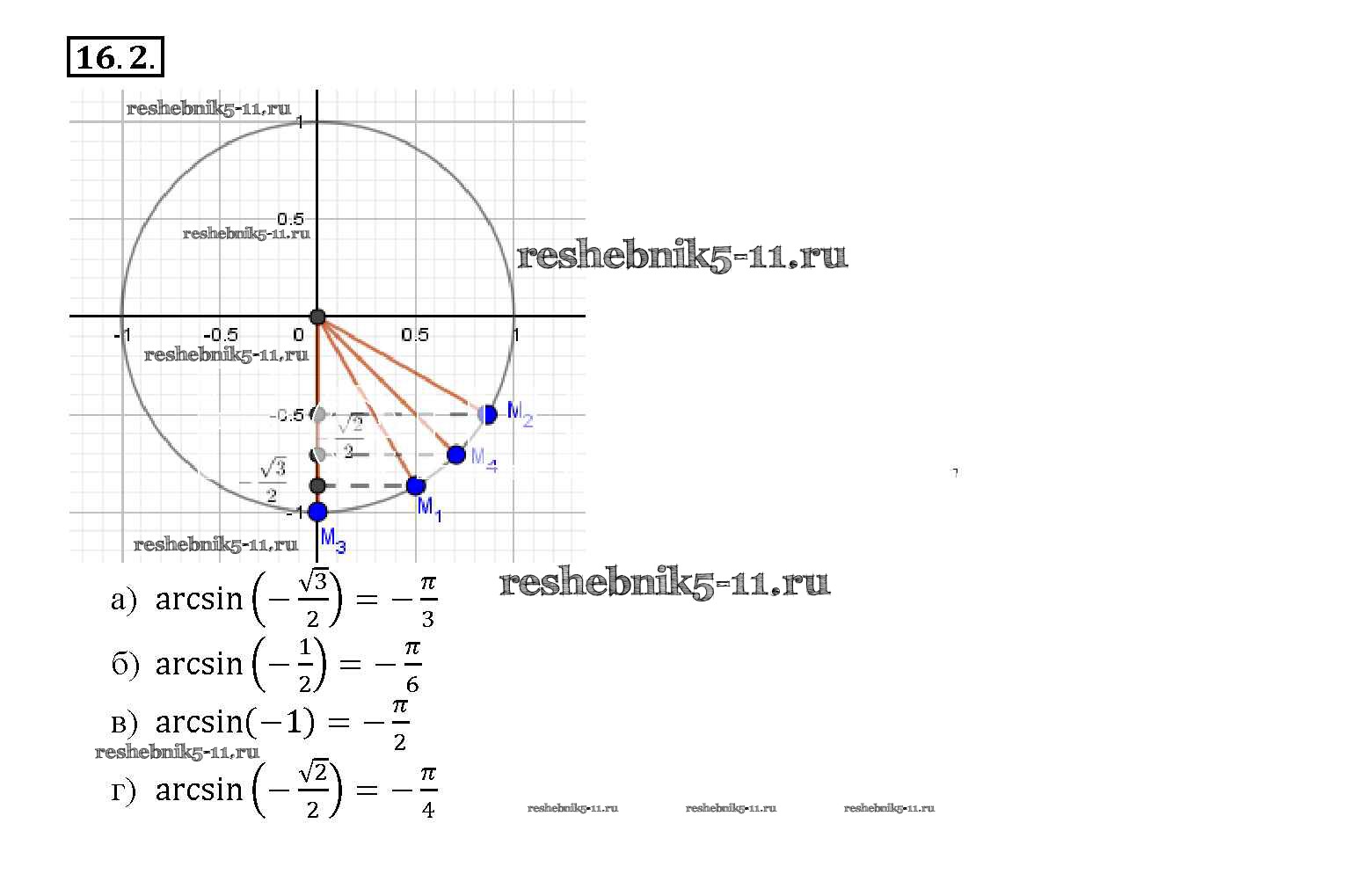 Готовая домашняя работа с ответами по Алгебре за 10, 11 класс Мордкович, Денищева, Корешкова, Мишустина, Семёнов, Тульчинская Задачник Базовый уровень Часть 2 Мнемозина 2015 ФГОС - §16. Арксинус. Решение уравнения sin t = a 16. 2