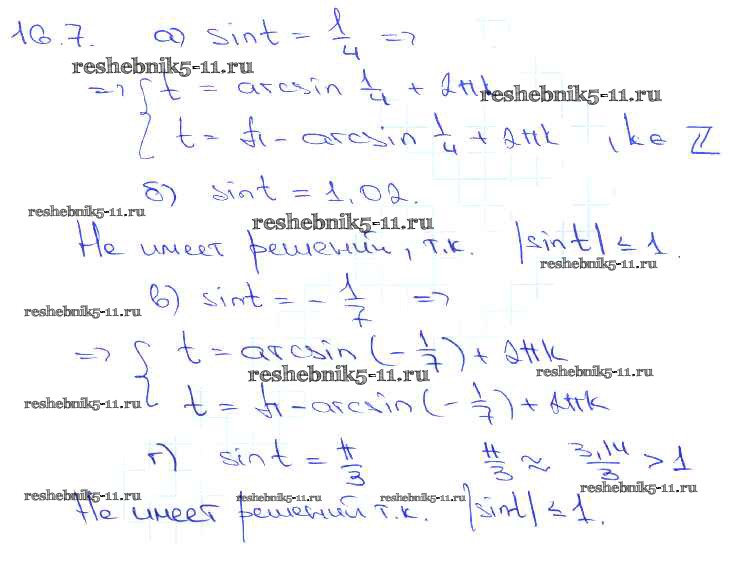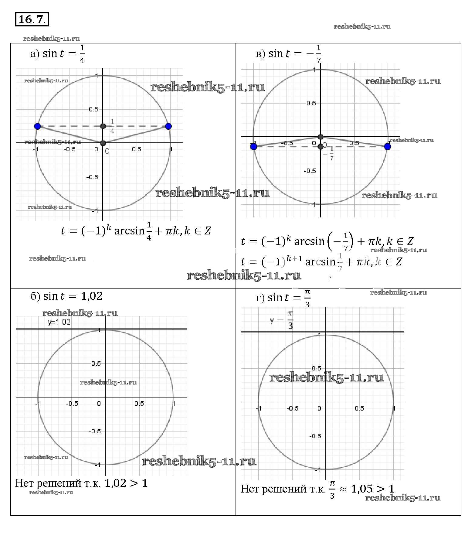 Готовая домашняя работа с ответами по Алгебре за 10, 11 класс Мордкович, Денищева, Корешкова, Мишустина, Семёнов, Тульчинская Задачник Базовый уровень Часть 2 Мнемозина 2015 ФГОС - §16. Арксинус. Решение уравнения sin t = a 16. 7