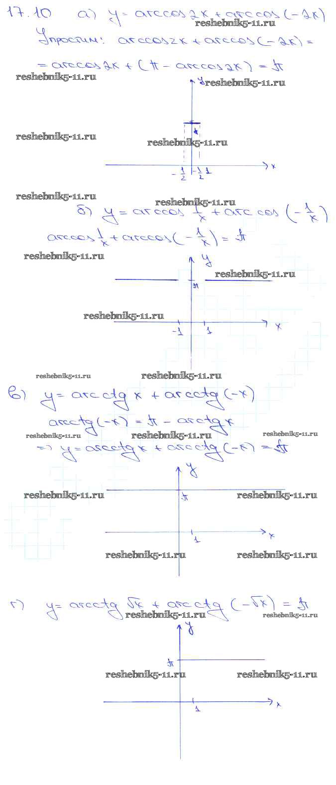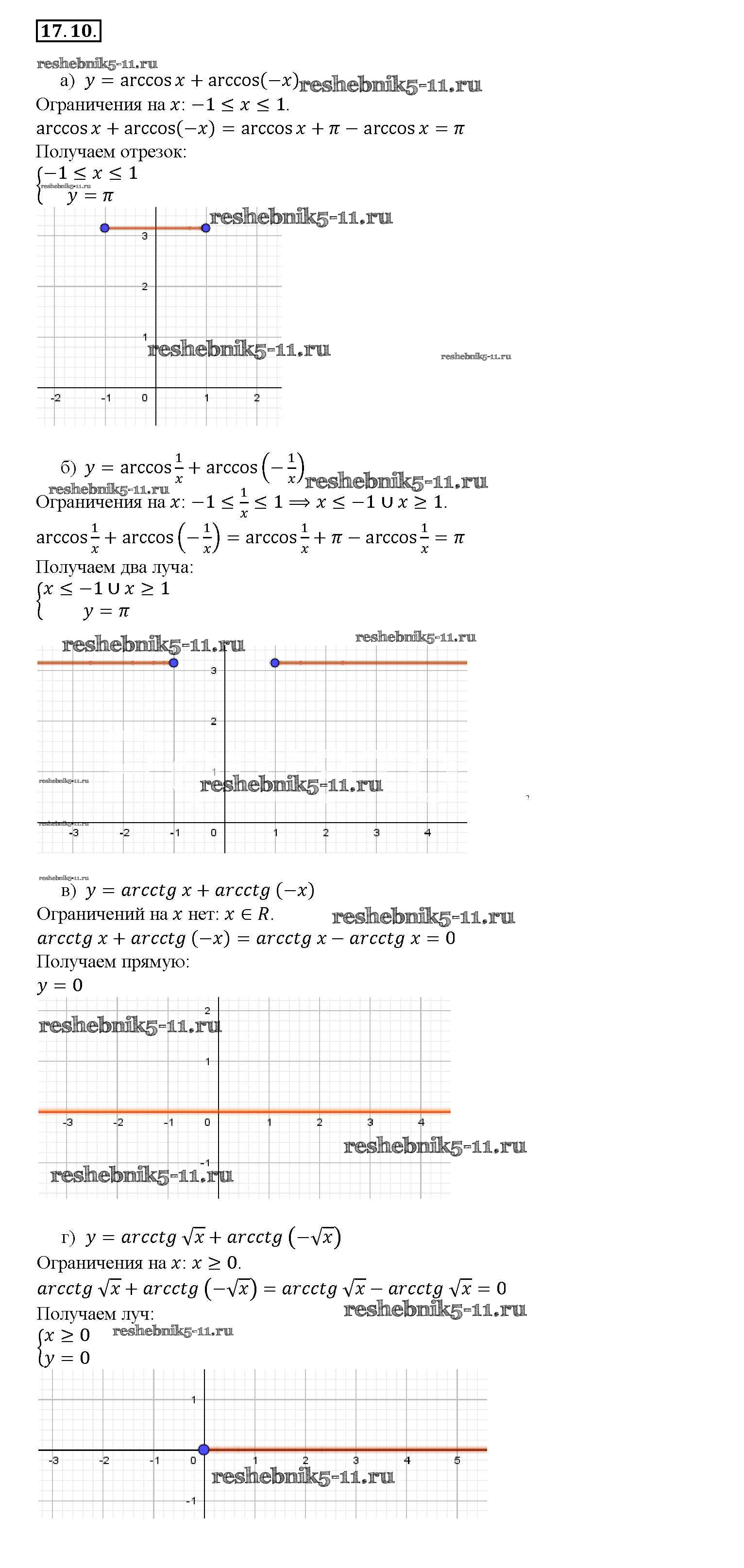 Готовая домашняя работа с ответами по Алгебре за 10, 11 класс Мордкович, Денищева, Корешкова, Мишустина, Семёнов, Тульчинская Задачник Базовый уровень Часть 2 Мнемозина 2015 ФГОС - §17. Арктангенс и арккотангенс 17. 10