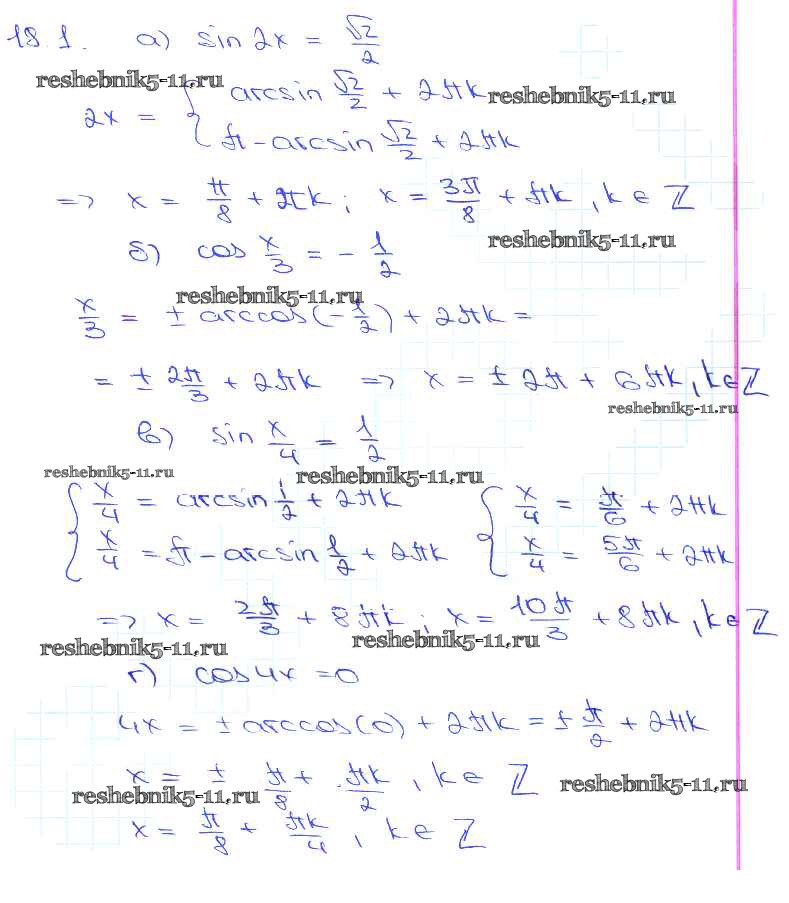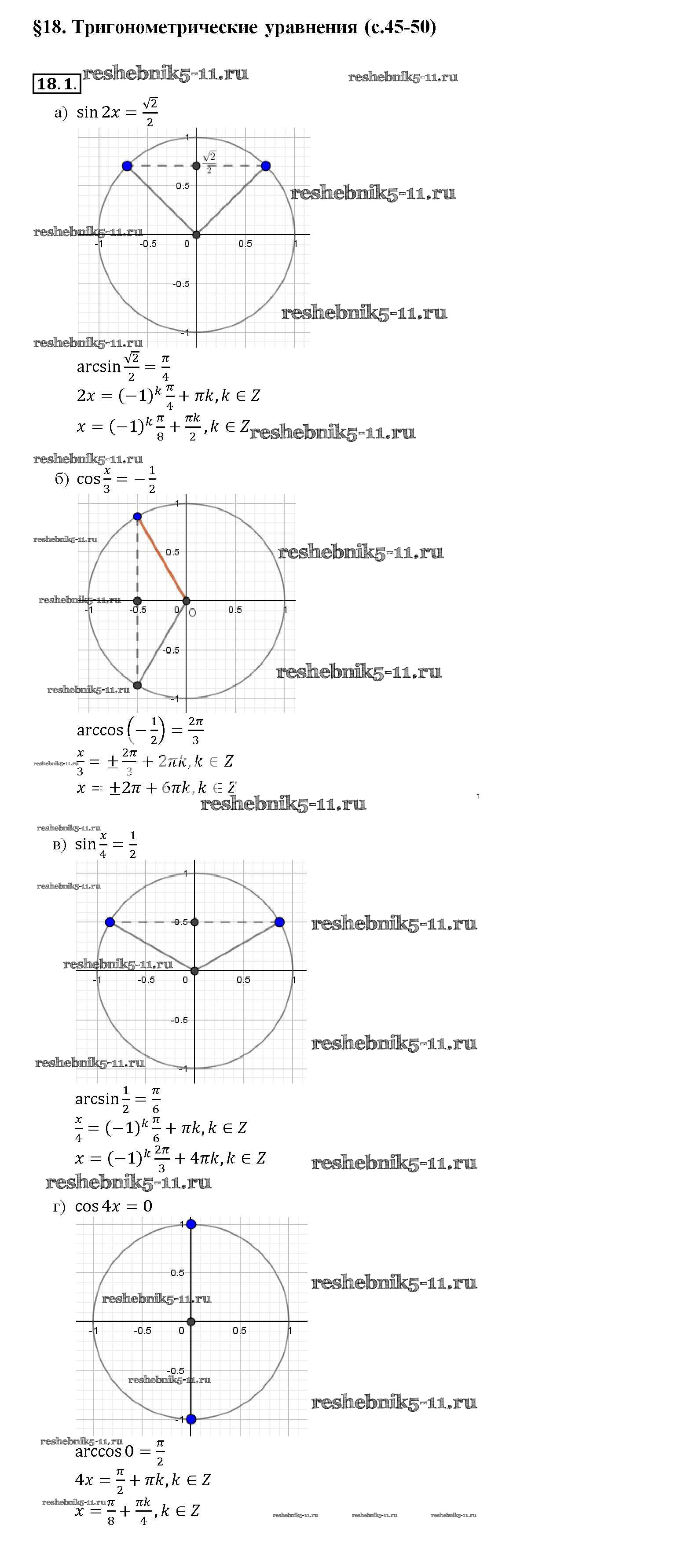 Готовая домашняя работа с ответами по Алгебре за 10, 11 класс Мордкович, Денищева, Корешкова, Мишустина, Семёнов, Тульчинская Задачник Базовый уровень Часть 2 Мнемозина 2015 ФГОС - §18. Тригонометрические уравнения 18. 1