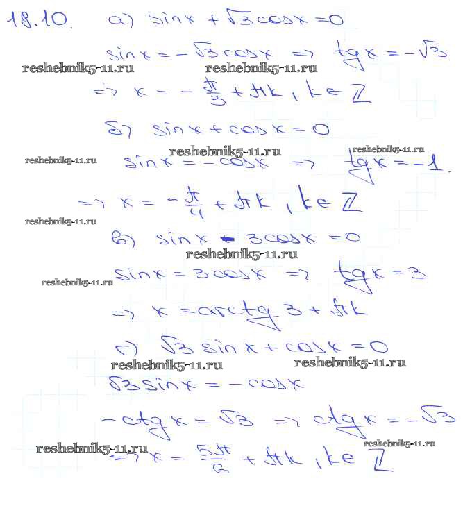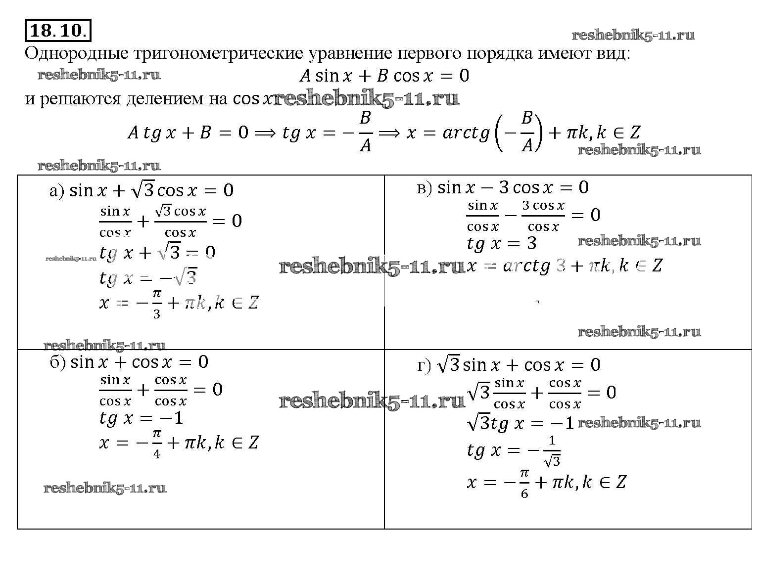 Готовая домашняя работа с ответами по Алгебре за 10, 11 класс Мордкович, Денищева, Корешкова, Мишустина, Семёнов, Тульчинская Задачник Базовый уровень Часть 2 Мнемозина 2015 ФГОС - §18. Тригонометрические уравнения 18. 10