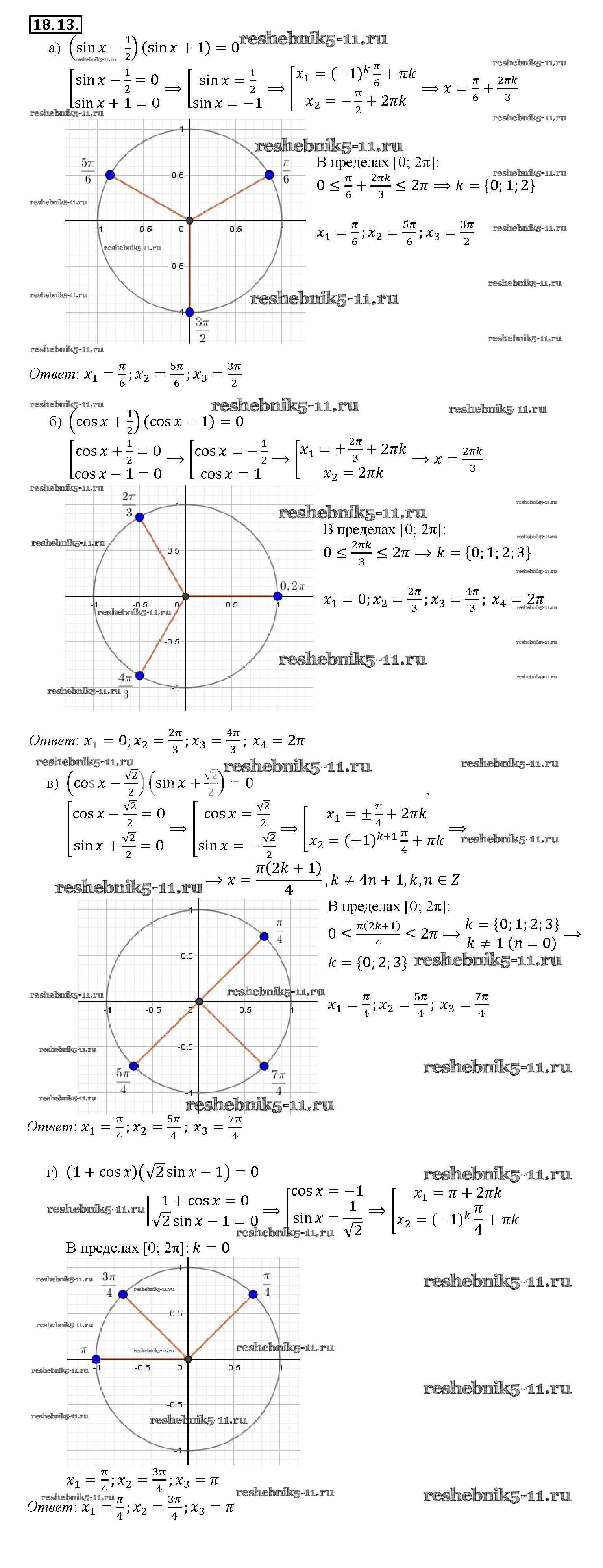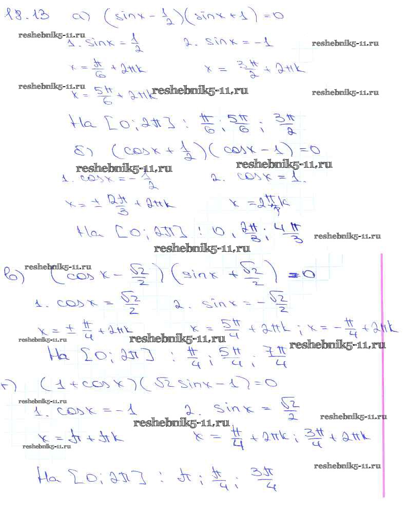 Готовая домашняя работа с ответами по Алгебре за 10, 11 класс Мордкович, Денищева, Корешкова, Мишустина, Семёнов, Тульчинская Задачник Базовый уровень Часть 2 Мнемозина 2015 ФГОС - §18. Тригонометрические уравнения 18. 13
