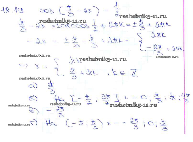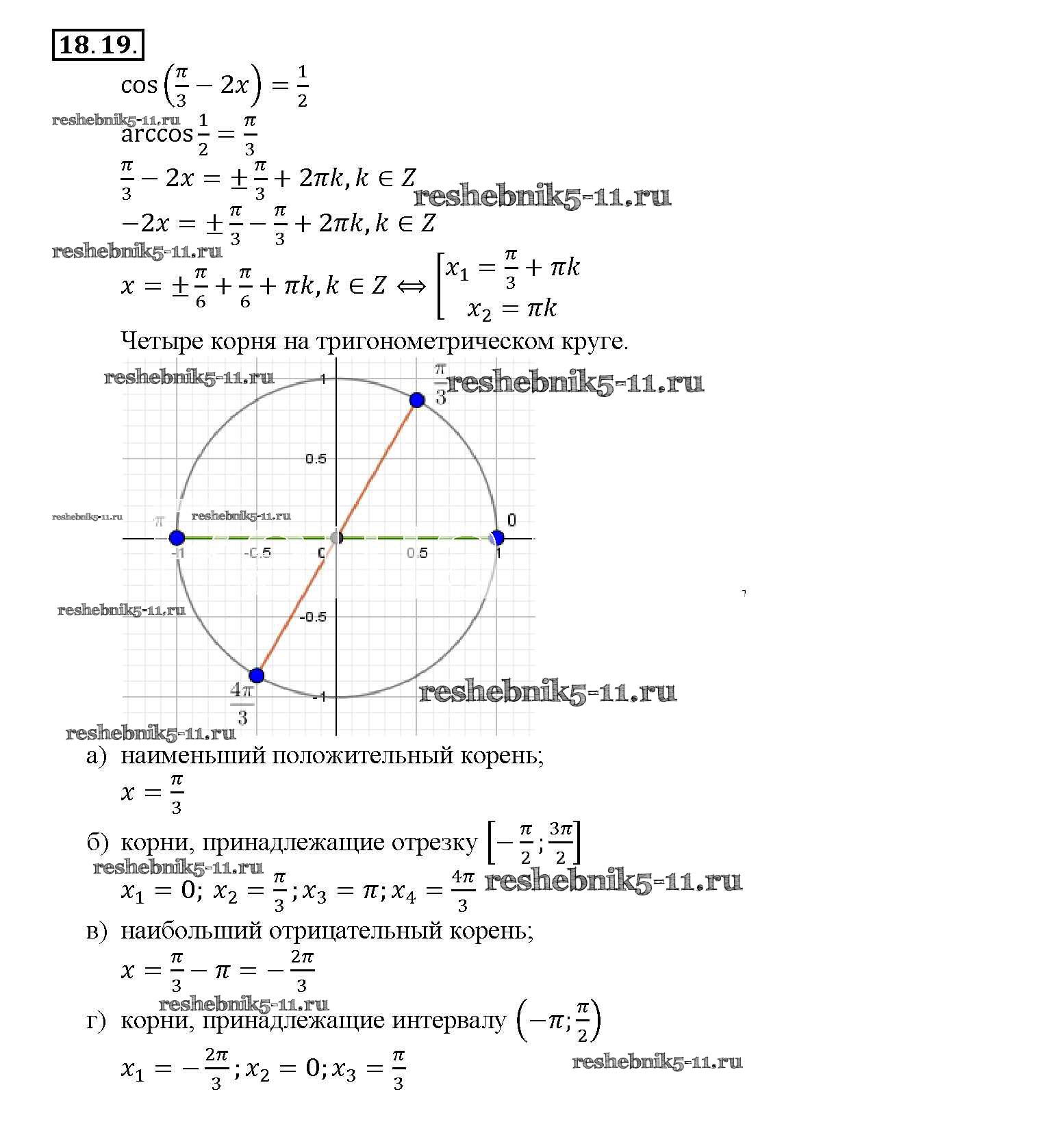 Готовая домашняя работа с ответами по Алгебре за 10, 11 класс Мордкович, Денищева, Корешкова, Мишустина, Семёнов, Тульчинская Задачник Базовый уровень Часть 2 Мнемозина 2015 ФГОС - §18. Тригонометрические уравнения 18. 19