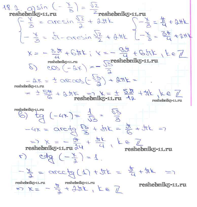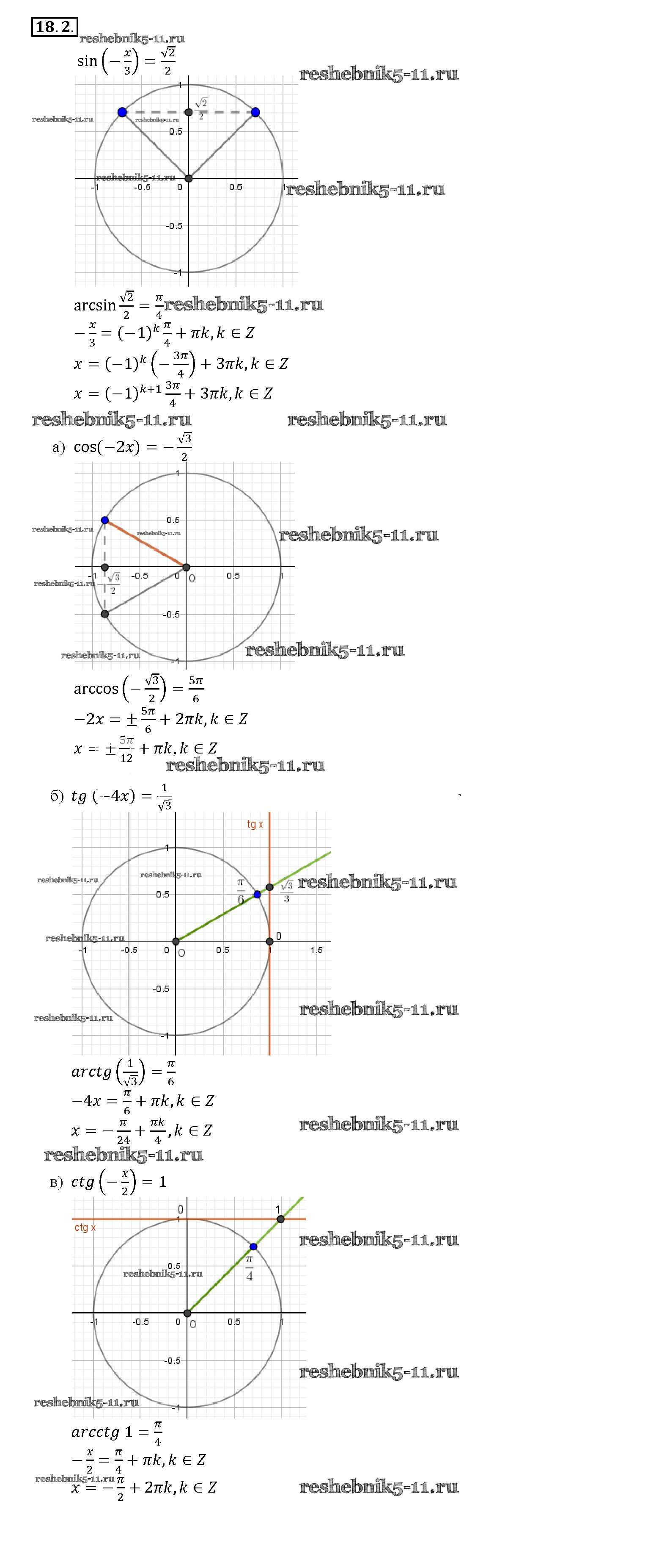 Готовая домашняя работа с ответами по Алгебре за 10, 11 класс Мордкович, Денищева, Корешкова, Мишустина, Семёнов, Тульчинская Задачник Базовый уровень Часть 2 Мнемозина 2015 ФГОС - §18. Тригонометрические уравнения 18. 2