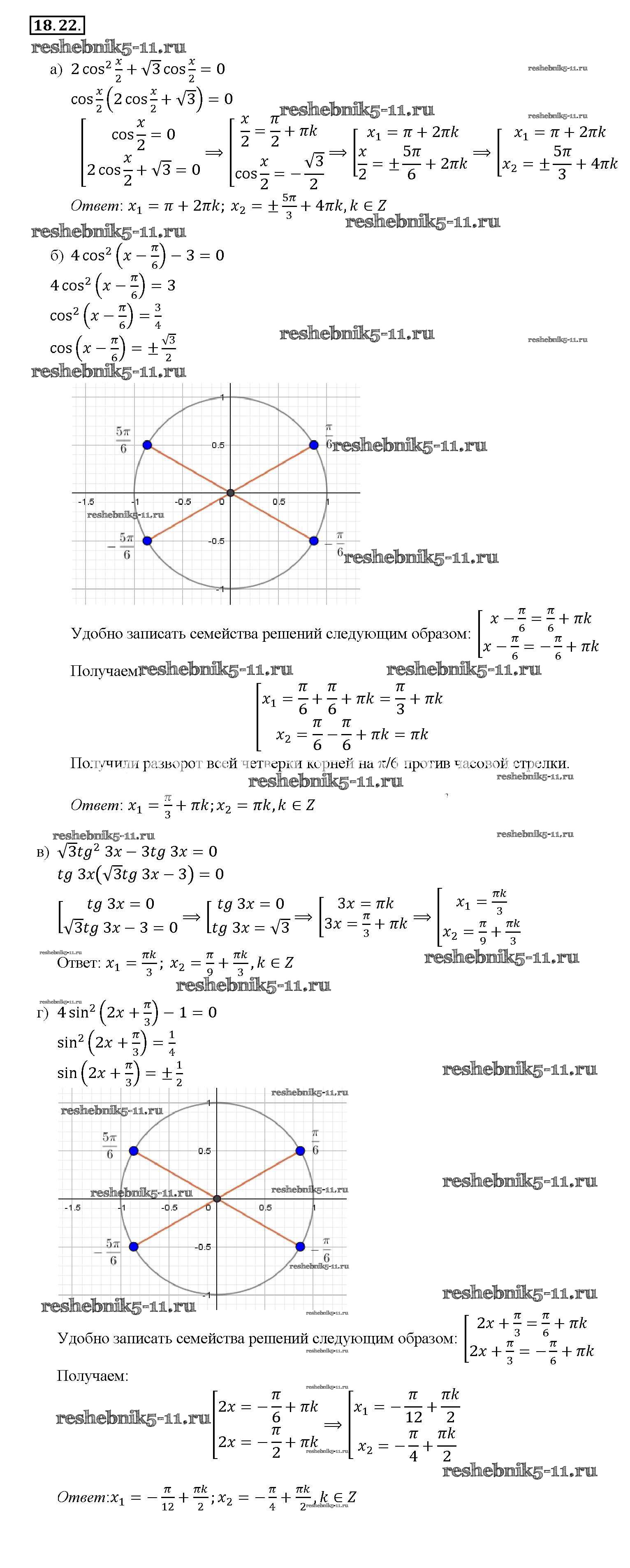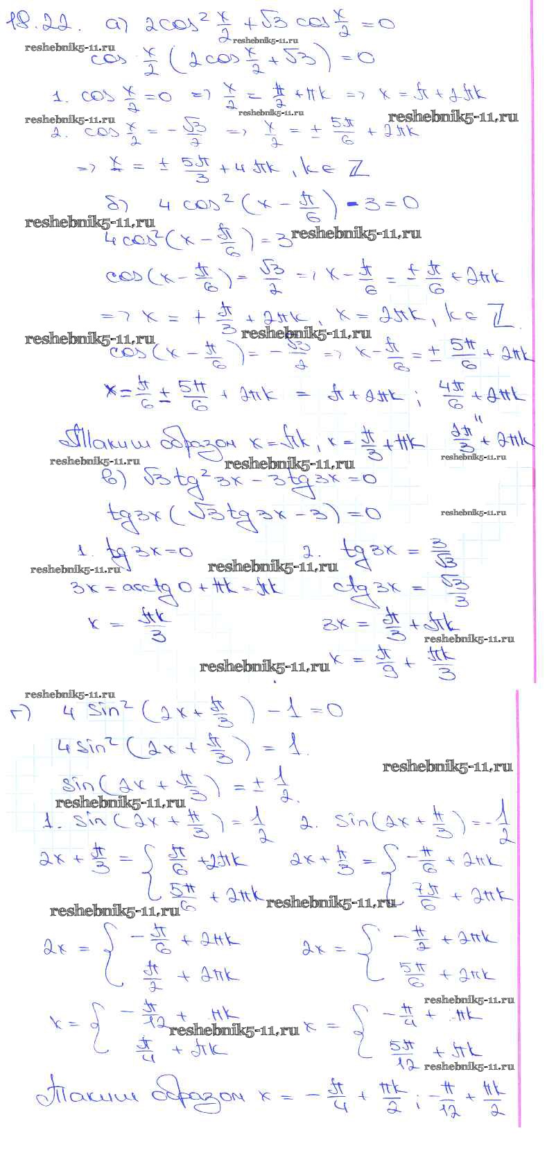 Готовая домашняя работа с ответами по Алгебре за 10, 11 класс Мордкович, Денищева, Корешкова, Мишустина, Семёнов, Тульчинская Задачник Базовый уровень Часть 2 Мнемозина 2015 ФГОС - §18. Тригонометрические уравнения 18. 22
