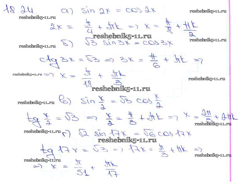 Готовая домашняя работа с ответами по Алгебре за 10, 11 класс Мордкович, Денищева, Корешкова, Мишустина, Семёнов, Тульчинская Задачник Базовый уровень Часть 2 Мнемозина 2015 ФГОС - §18. Тригонометрические уравнения 18. 24