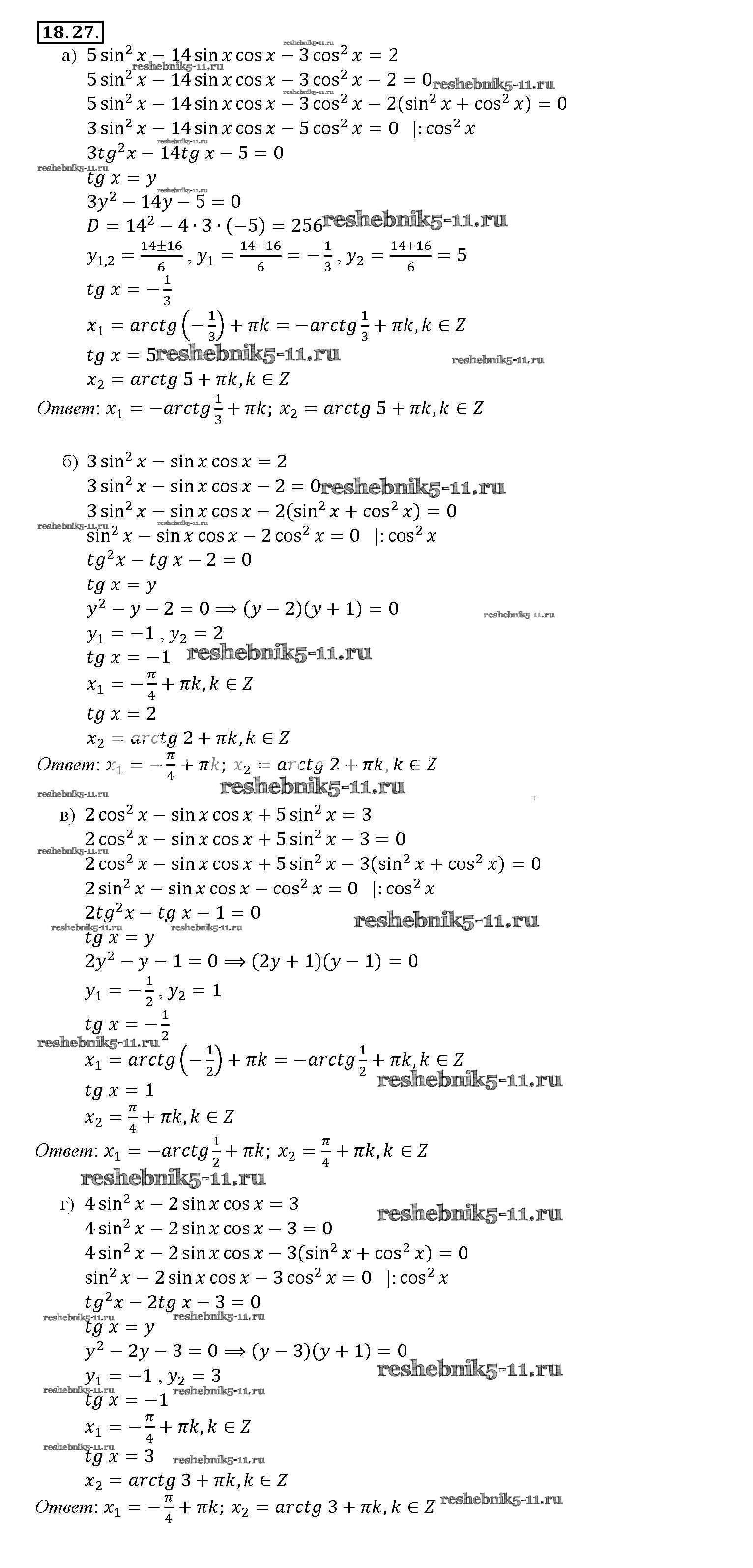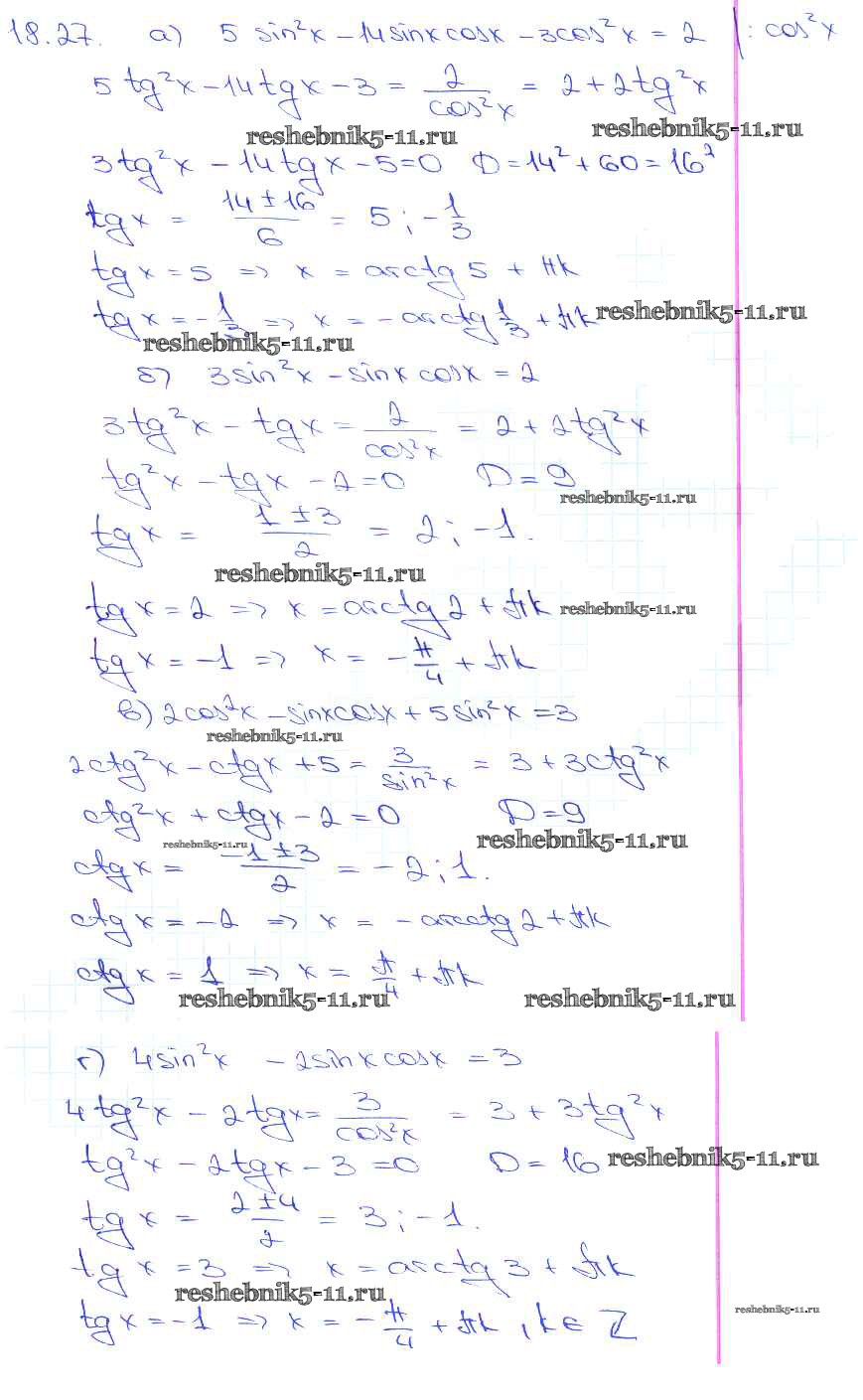 Готовая домашняя работа с ответами по Алгебре за 10, 11 класс Мордкович, Денищева, Корешкова, Мишустина, Семёнов, Тульчинская Задачник Базовый уровень Часть 2 Мнемозина 2015 ФГОС - §18. Тригонометрические уравнения 18. 27