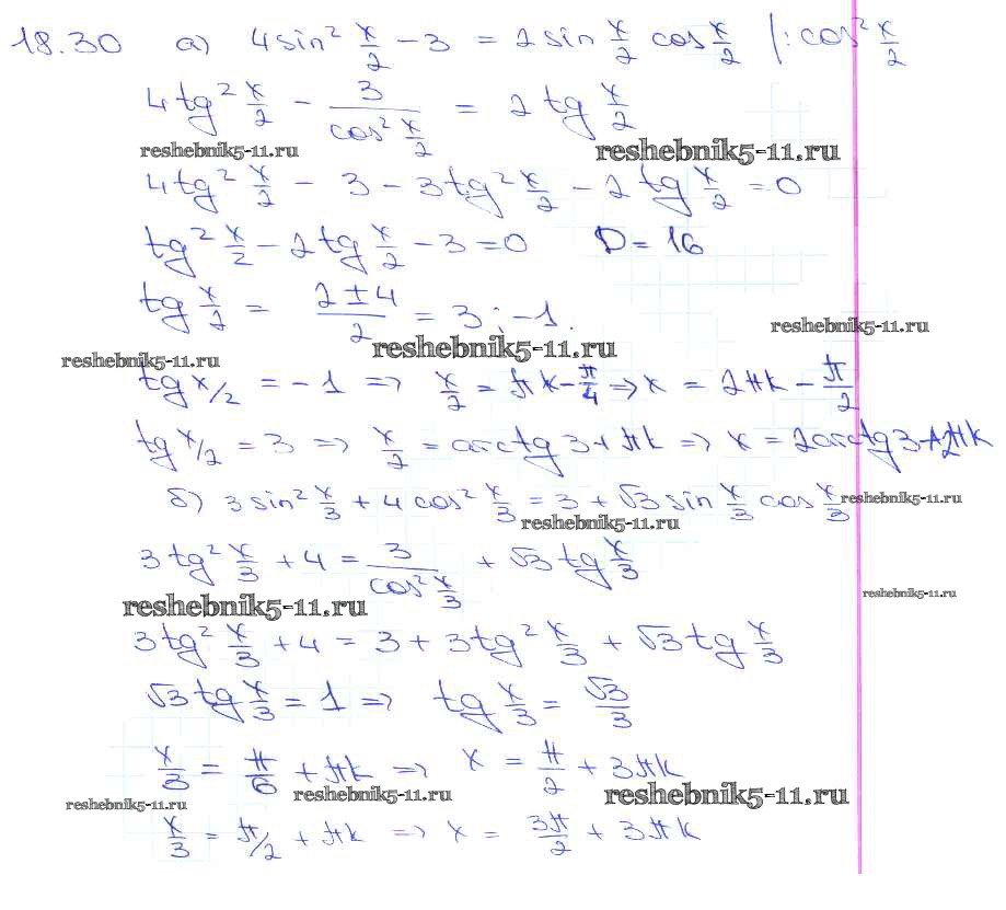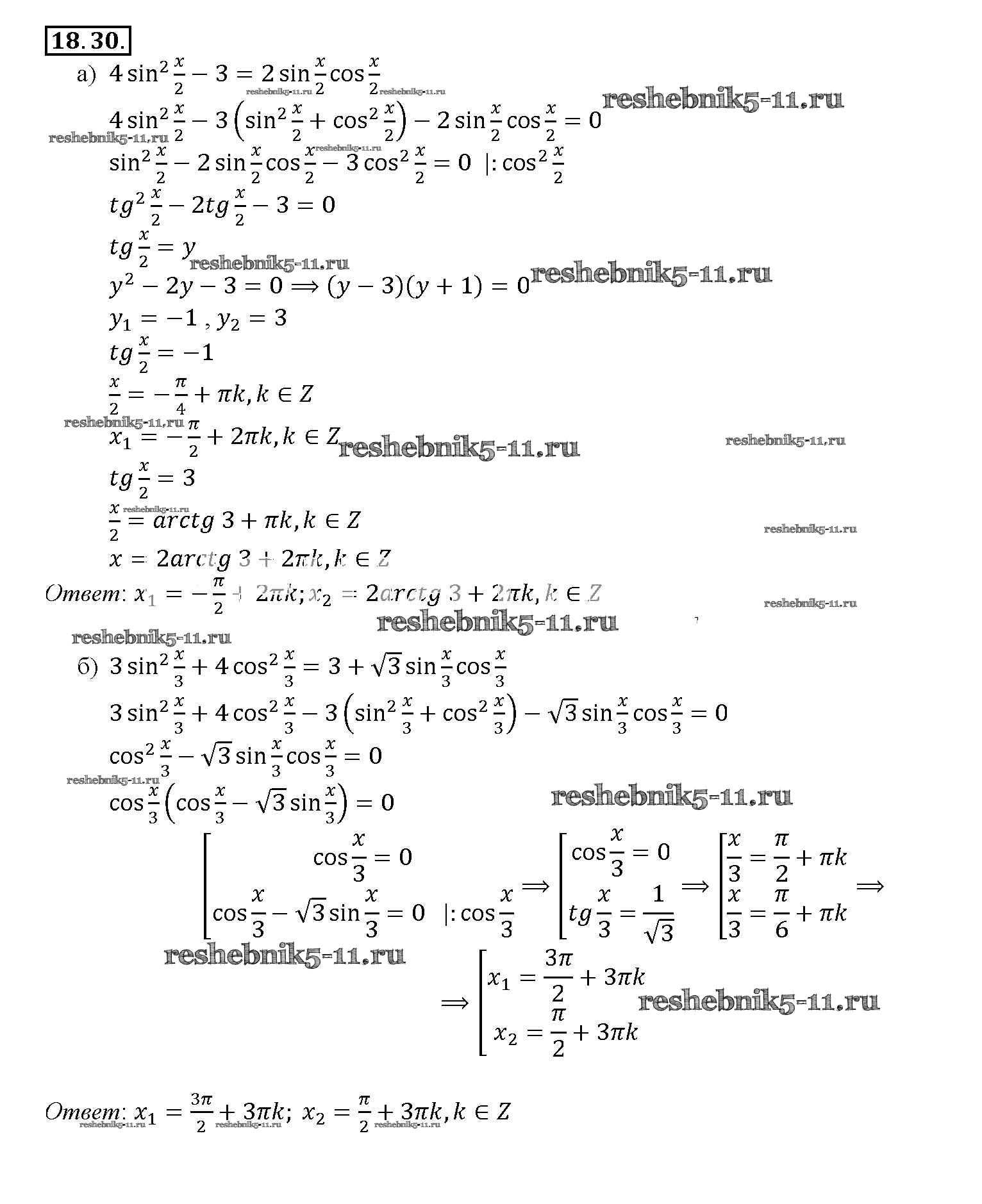 Готовая домашняя работа с ответами по Алгебре за 10, 11 класс Мордкович, Денищева, Корешкова, Мишустина, Семёнов, Тульчинская Задачник Базовый уровень Часть 2 Мнемозина 2015 ФГОС - §18. Тригонометрические уравнения 18. 30