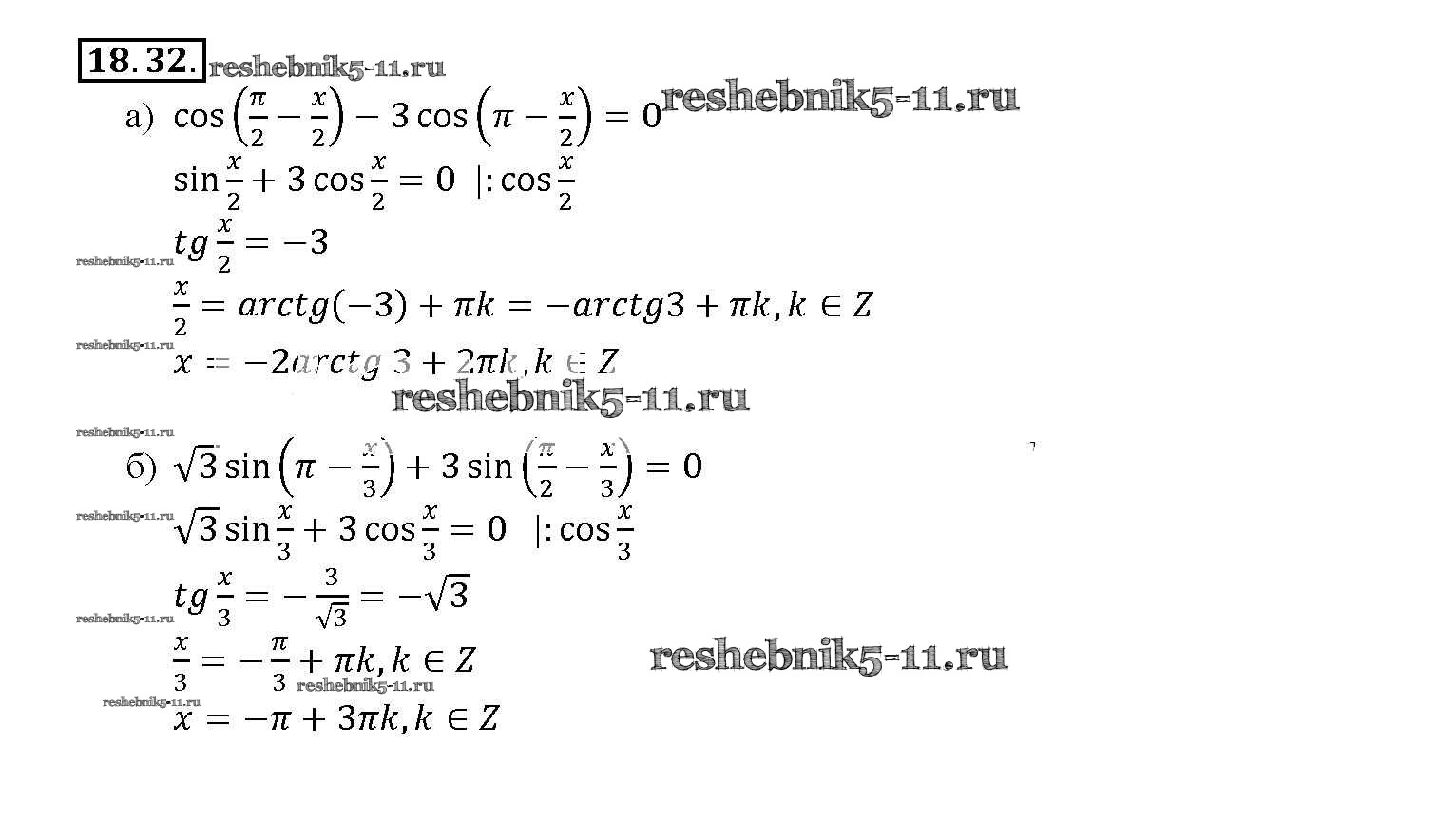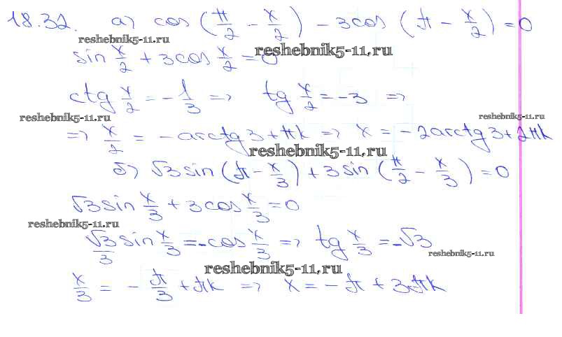 Готовая домашняя работа с ответами по Алгебре за 10, 11 класс Мордкович, Денищева, Корешкова, Мишустина, Семёнов, Тульчинская Задачник Базовый уровень Часть 2 Мнемозина 2015 ФГОС - §18. Тригонометрические уравнения 18. 32