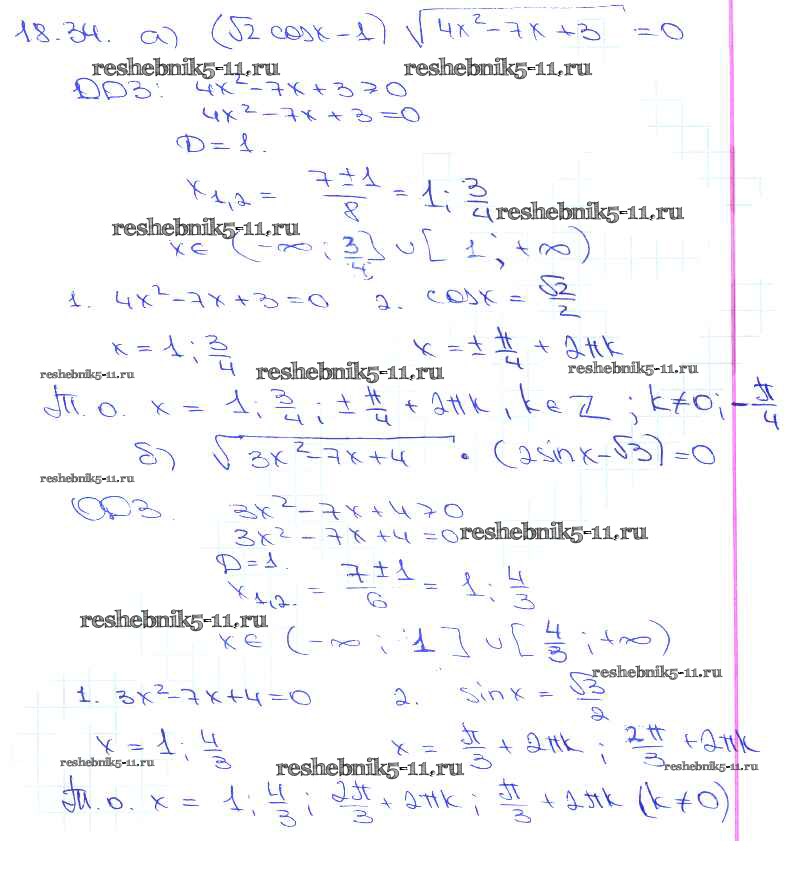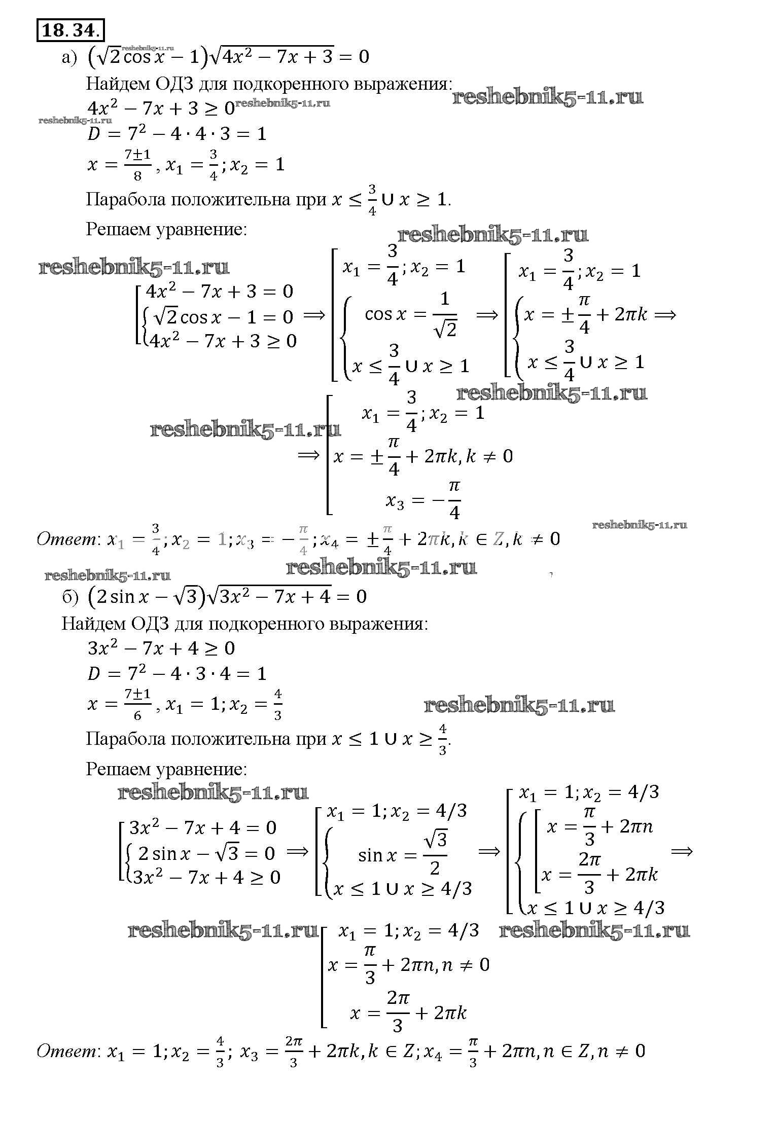 Готовая домашняя работа с ответами по Алгебре за 10, 11 класс Мордкович, Денищева, Корешкова, Мишустина, Семёнов, Тульчинская Задачник Базовый уровень Часть 2 Мнемозина 2015 ФГОС - §18. Тригонометрические уравнения 18. 34