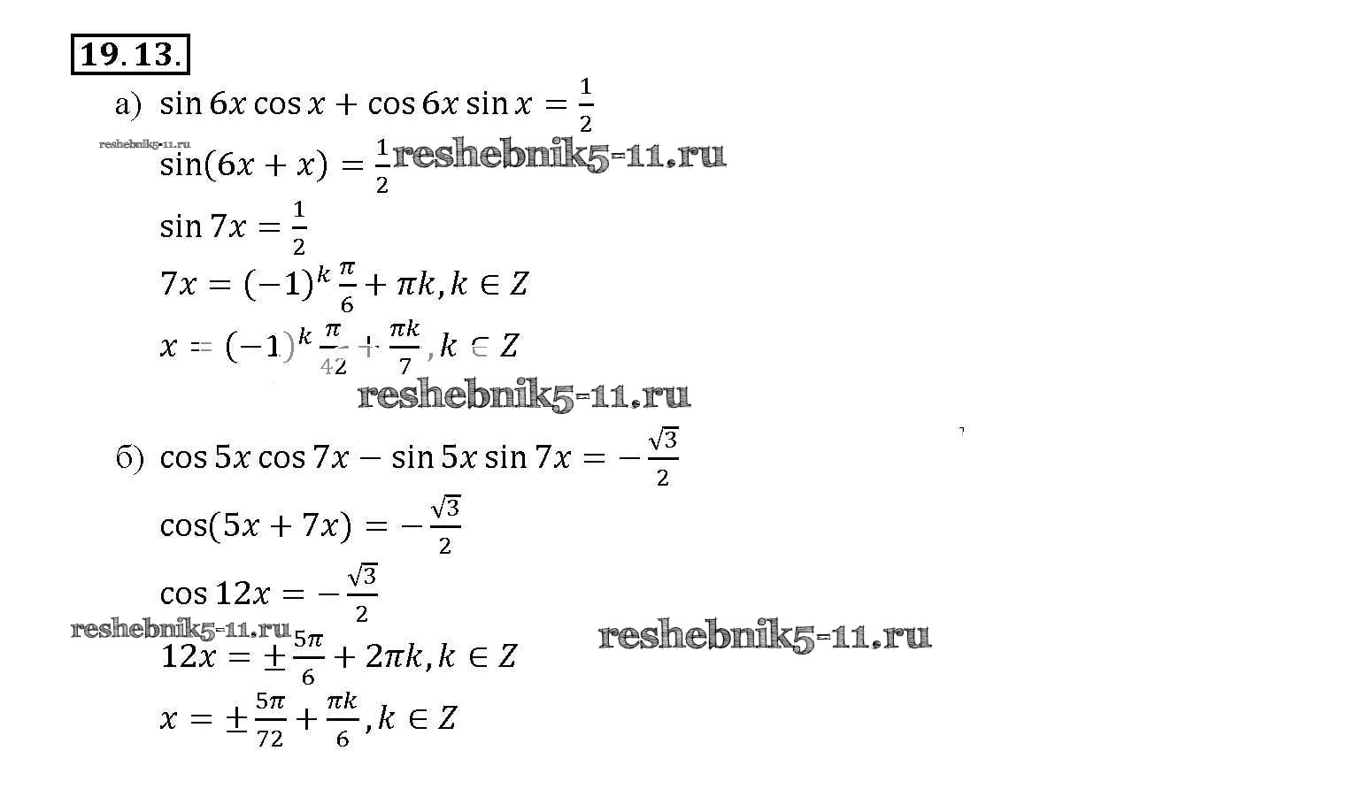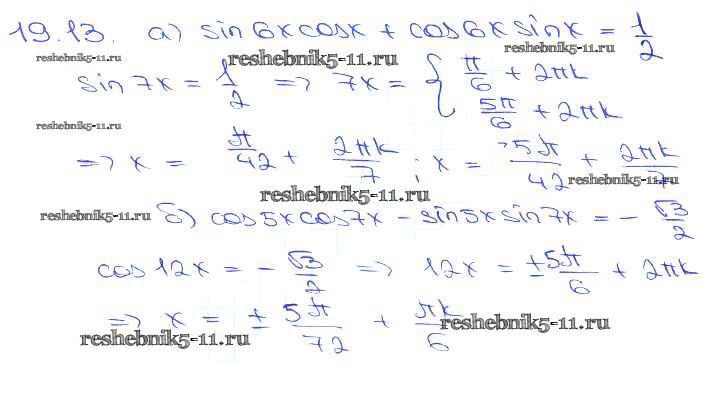 Готовая домашняя работа с ответами по Алгебре за 10, 11 класс Мордкович, Денищева, Корешкова, Мишустина, Семёнов, Тульчинская Задачник Базовый уровень Часть 2 Мнемозина 2015 ФГОС - §19. Синус и косинус суммы и разности аргументов 19. 13