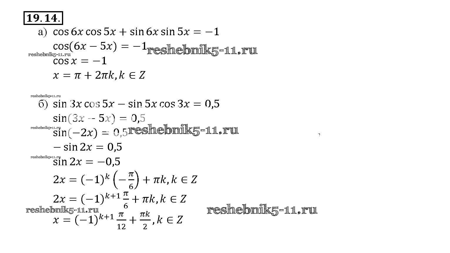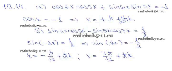 Готовая домашняя работа с ответами по Алгебре за 10, 11 класс Мордкович, Денищева, Корешкова, Мишустина, Семёнов, Тульчинская Задачник Базовый уровень Часть 2 Мнемозина 2015 ФГОС - §19. Синус и косинус суммы и разности аргументов 19. 14
