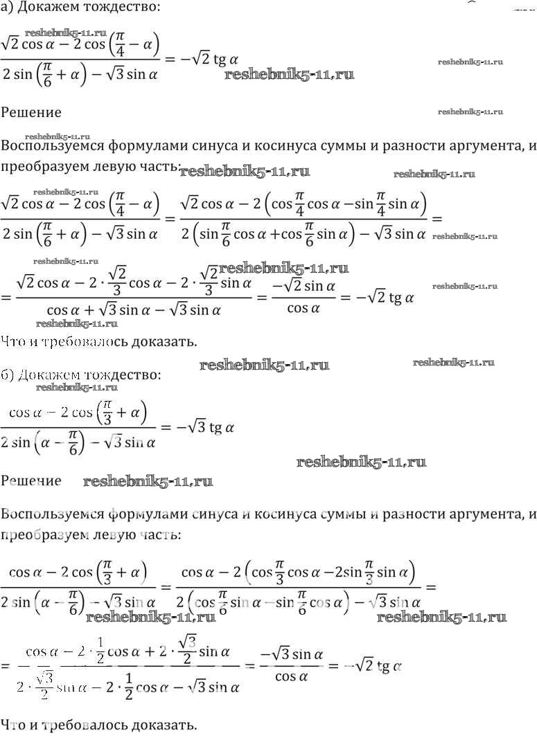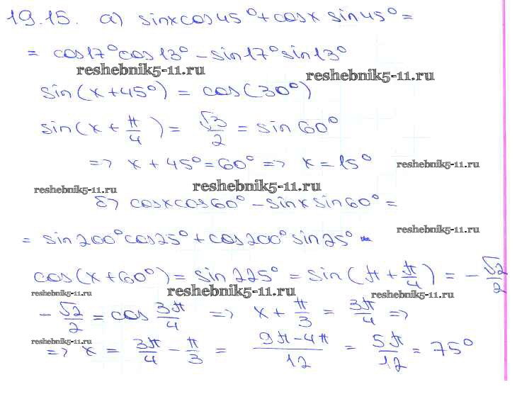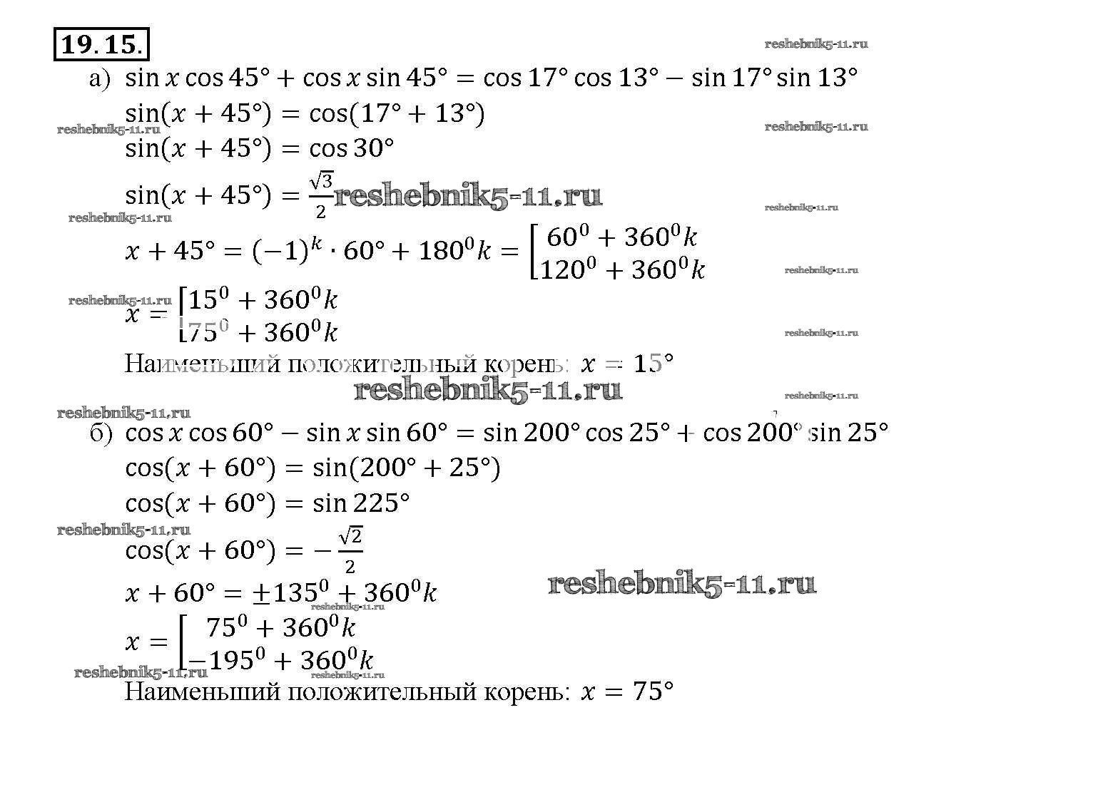 Готовая домашняя работа с ответами по Алгебре за 10, 11 класс Мордкович, Денищева, Корешкова, Мишустина, Семёнов, Тульчинская Задачник Базовый уровень Часть 2 Мнемозина 2015 ФГОС - §19. Синус и косинус суммы и разности аргументов 19. 15