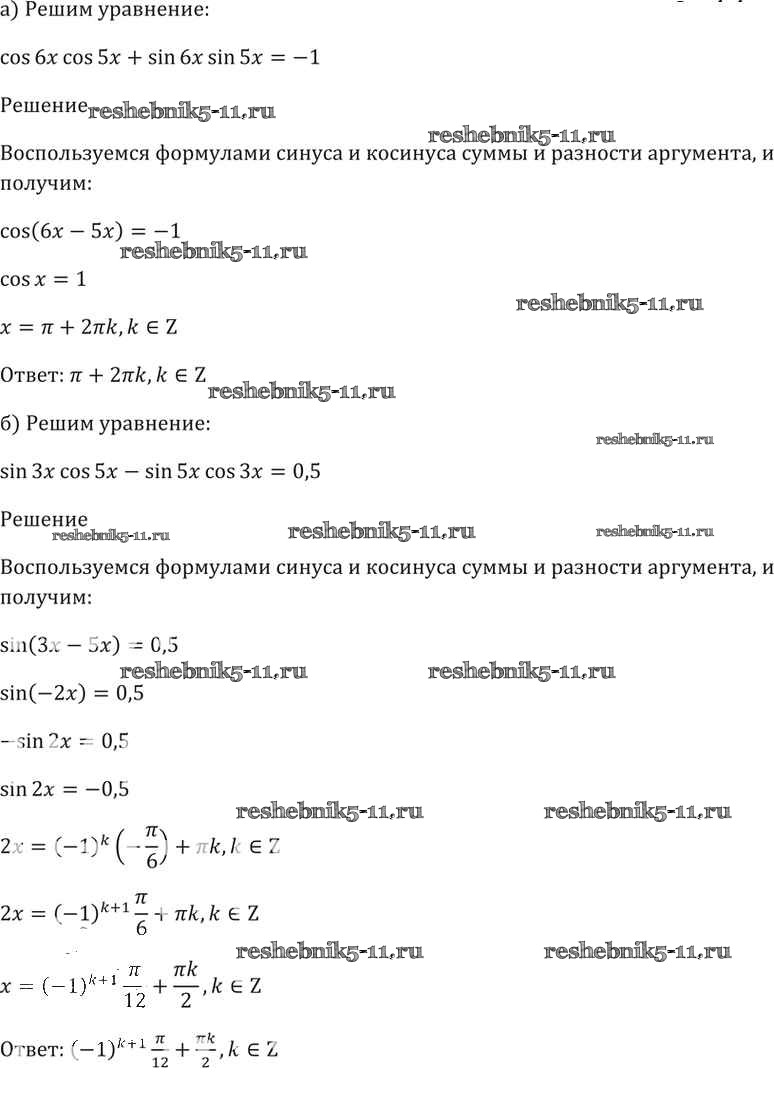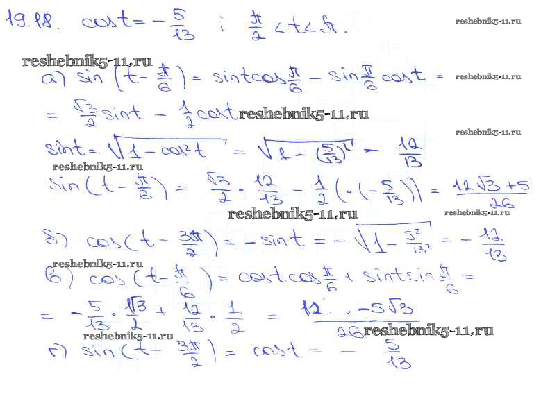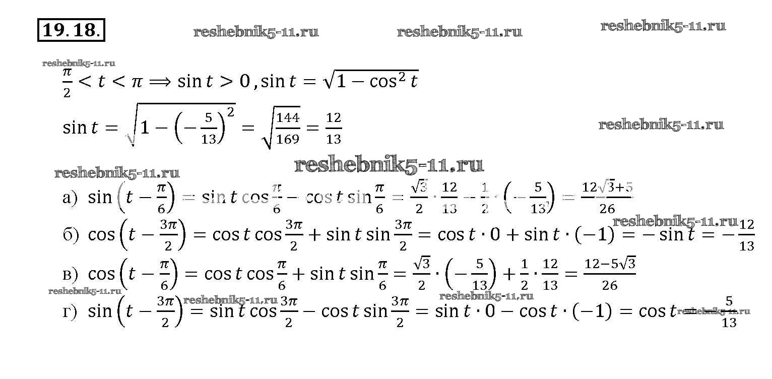 Готовая домашняя работа с ответами по Алгебре за 10, 11 класс Мордкович, Денищева, Корешкова, Мишустина, Семёнов, Тульчинская Задачник Базовый уровень Часть 2 Мнемозина 2015 ФГОС - §19. Синус и косинус суммы и разности аргументов 19. 18
