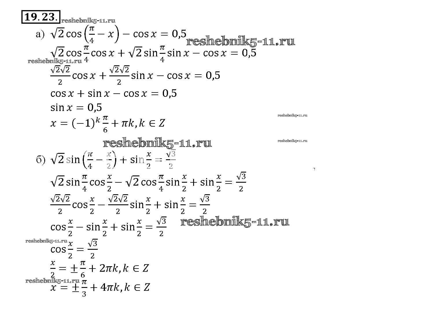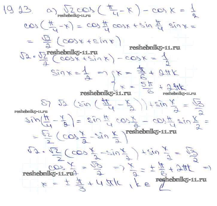 Готовая домашняя работа с ответами по Алгебре за 10, 11 класс Мордкович, Денищева, Корешкова, Мишустина, Семёнов, Тульчинская Задачник Базовый уровень Часть 2 Мнемозина 2015 ФГОС - §19. Синус и косинус суммы и разности аргументов 19. 23