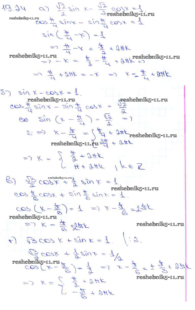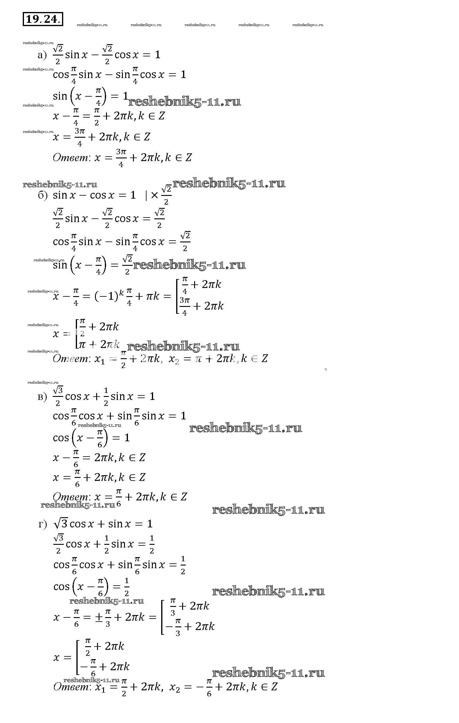 Готовая домашняя работа с ответами по Алгебре за 10, 11 класс Мордкович, Денищева, Корешкова, Мишустина, Семёнов, Тульчинская Задачник Базовый уровень Часть 2 Мнемозина 2015 ФГОС - §19. Синус и косинус суммы и разности аргументов 19. 24