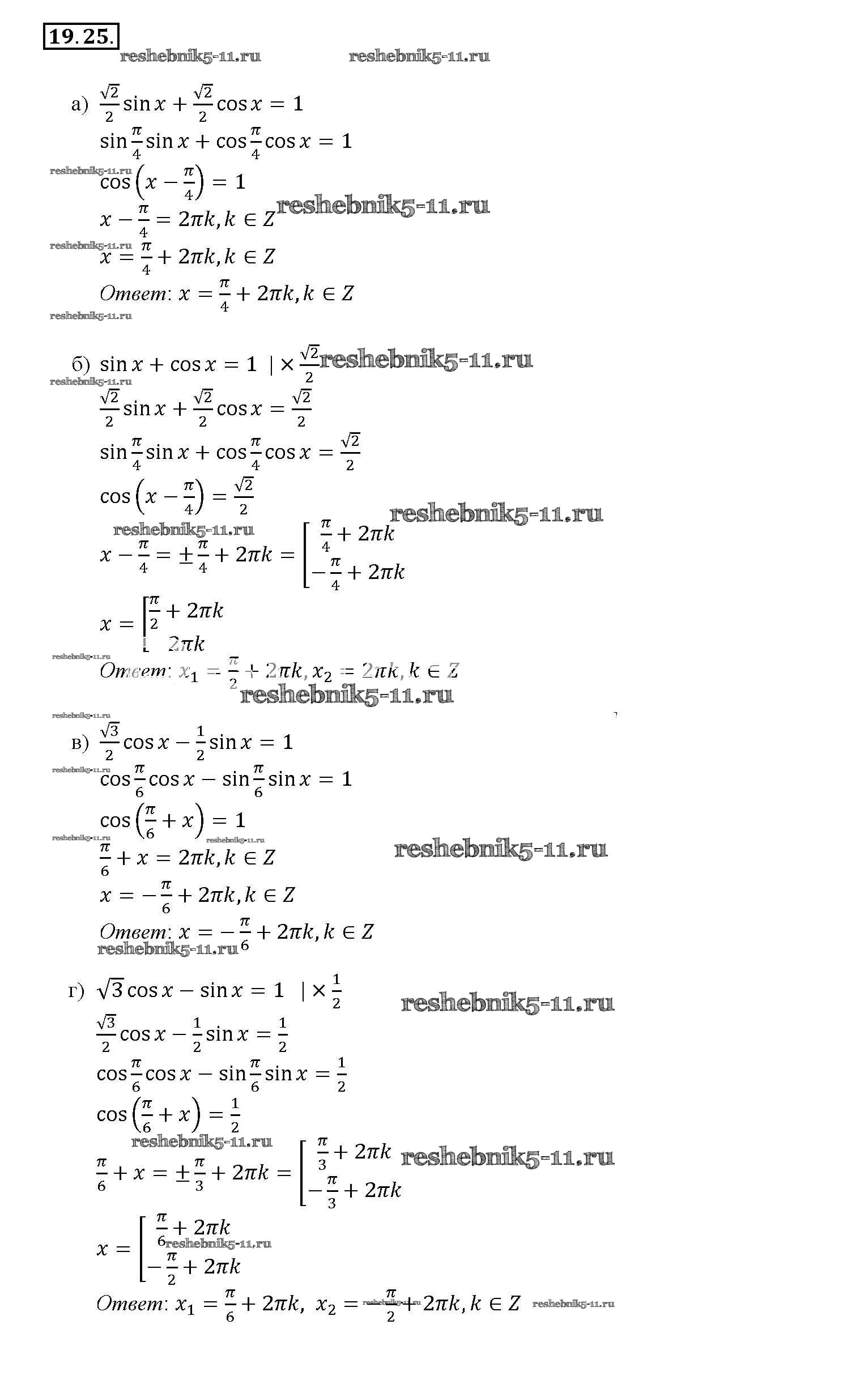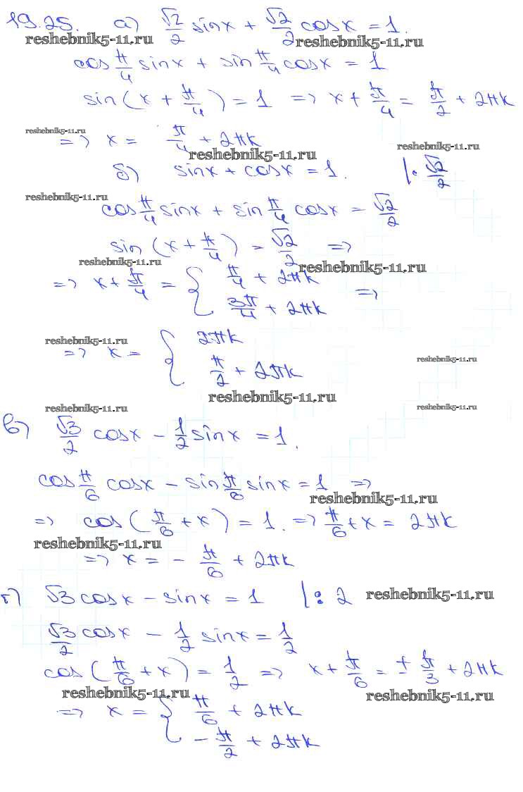 Готовая домашняя работа с ответами по Алгебре за 10, 11 класс Мордкович, Денищева, Корешкова, Мишустина, Семёнов, Тульчинская Задачник Базовый уровень Часть 2 Мнемозина 2015 ФГОС - §19. Синус и косинус суммы и разности аргументов 19. 25
