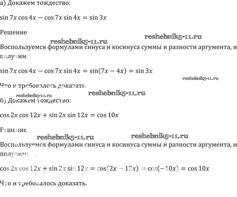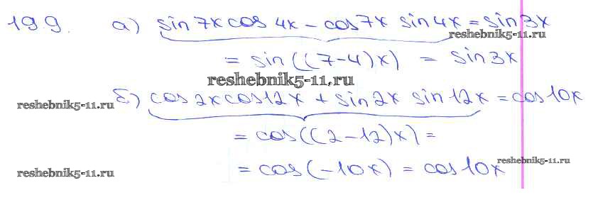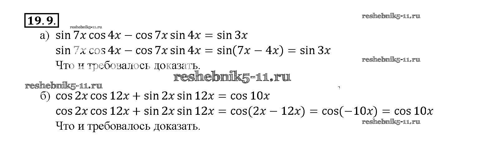 Готовая домашняя работа с ответами по Алгебре за 10, 11 класс Мордкович, Денищева, Корешкова, Мишустина, Семёнов, Тульчинская Задачник Базовый уровень Часть 2 Мнемозина 2015 ФГОС - §19. Синус и косинус суммы и разности аргументов 19. 9