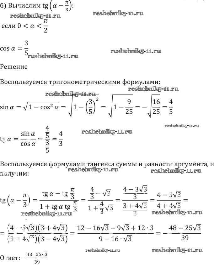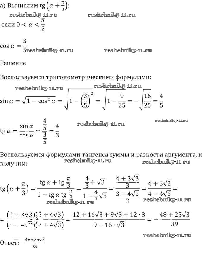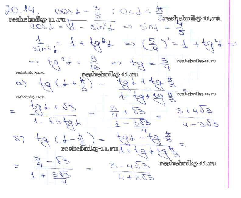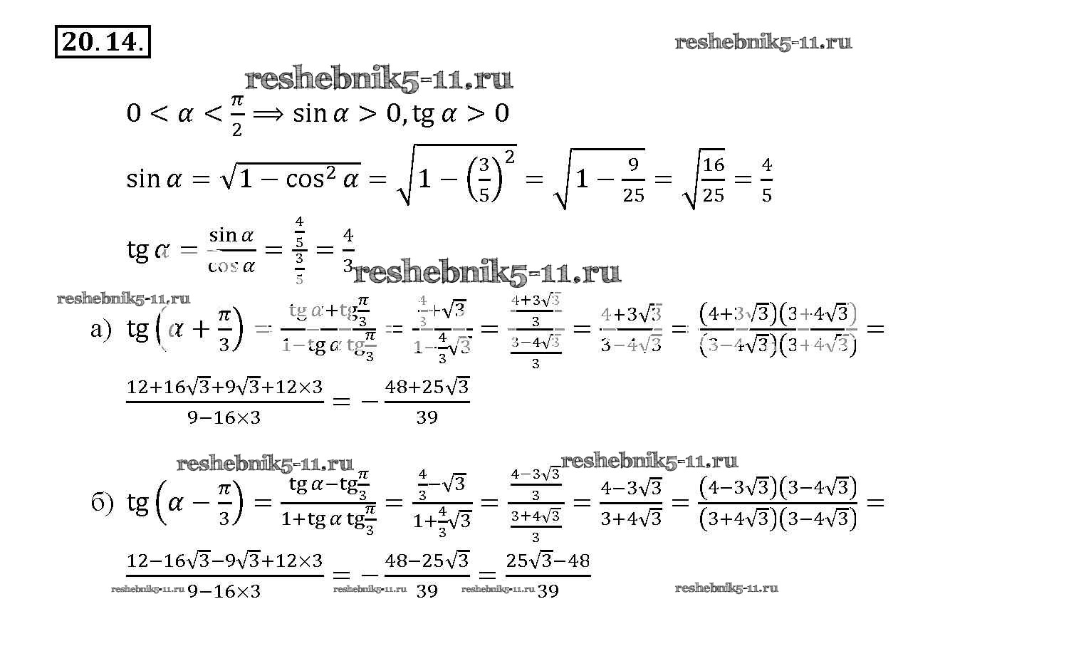 Готовая домашняя работа с ответами по Алгебре за 10, 11 класс Мордкович, Денищева, Корешкова, Мишустина, Семёнов, Тульчинская Задачник Базовый уровень Часть 2 Мнемозина 2015 ФГОС - §20. Тангенс суммы и разности аргументов 20. 14
