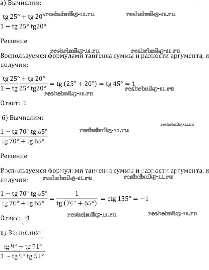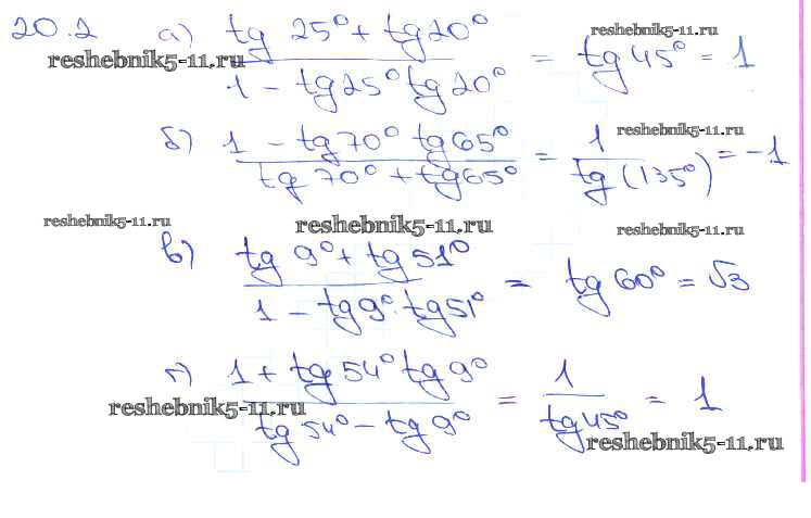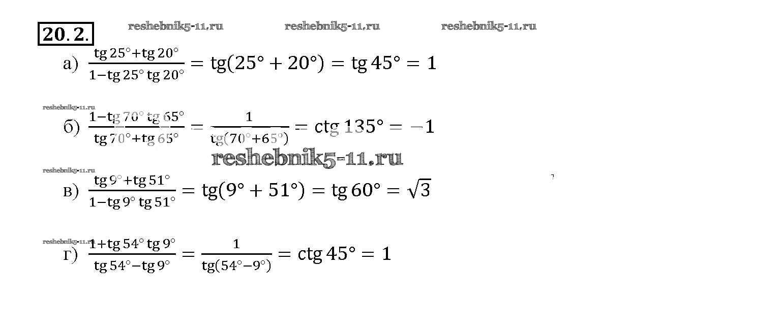 Готовая домашняя работа с ответами по Алгебре за 10, 11 класс Мордкович, Денищева, Корешкова, Мишустина, Семёнов, Тульчинская Задачник Базовый уровень Часть 2 Мнемозина 2015 ФГОС - §20. Тангенс суммы и разности аргументов 20. 2