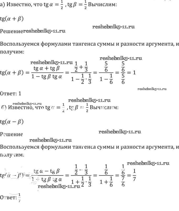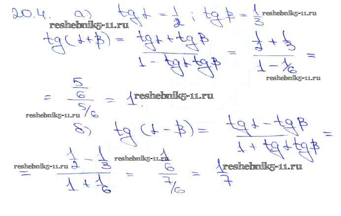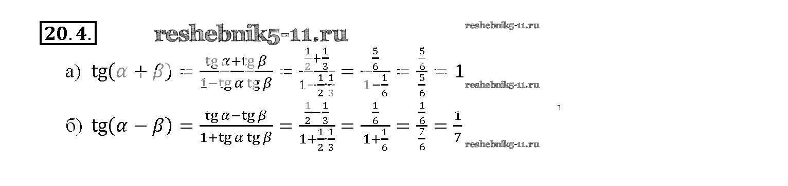 Готовая домашняя работа с ответами по Алгебре за 10, 11 класс Мордкович, Денищева, Корешкова, Мишустина, Семёнов, Тульчинская Задачник Базовый уровень Часть 2 Мнемозина 2015 ФГОС - §20. Тангенс суммы и разности аргументов 20. 4