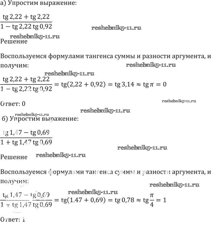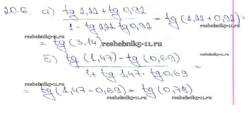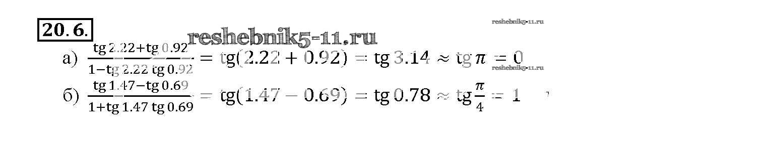 Готовая домашняя работа с ответами по Алгебре за 10, 11 класс Мордкович, Денищева, Корешкова, Мишустина, Семёнов, Тульчинская Задачник Базовый уровень Часть 2 Мнемозина 2015 ФГОС - §20. Тангенс суммы и разности аргументов 20. 6