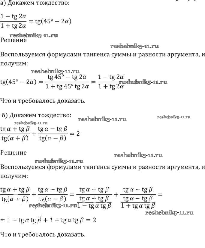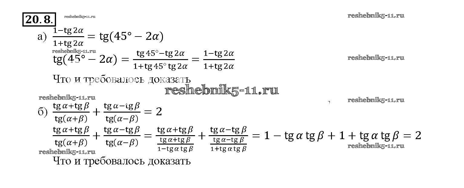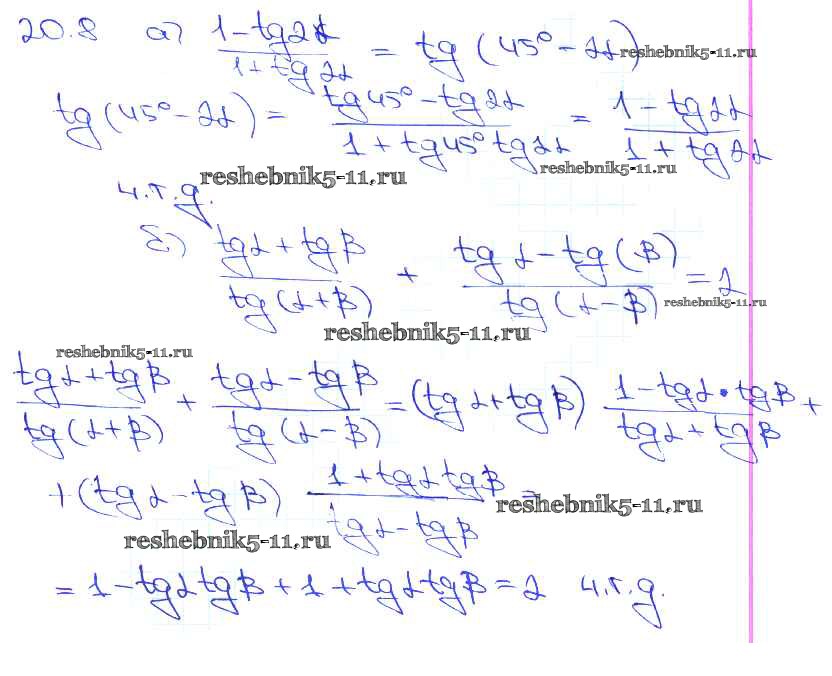 Готовая домашняя работа с ответами по Алгебре за 10, 11 класс Мордкович, Денищева, Корешкова, Мишустина, Семёнов, Тульчинская Задачник Базовый уровень Часть 2 Мнемозина 2015 ФГОС - §20. Тангенс суммы и разности аргументов 20. 8