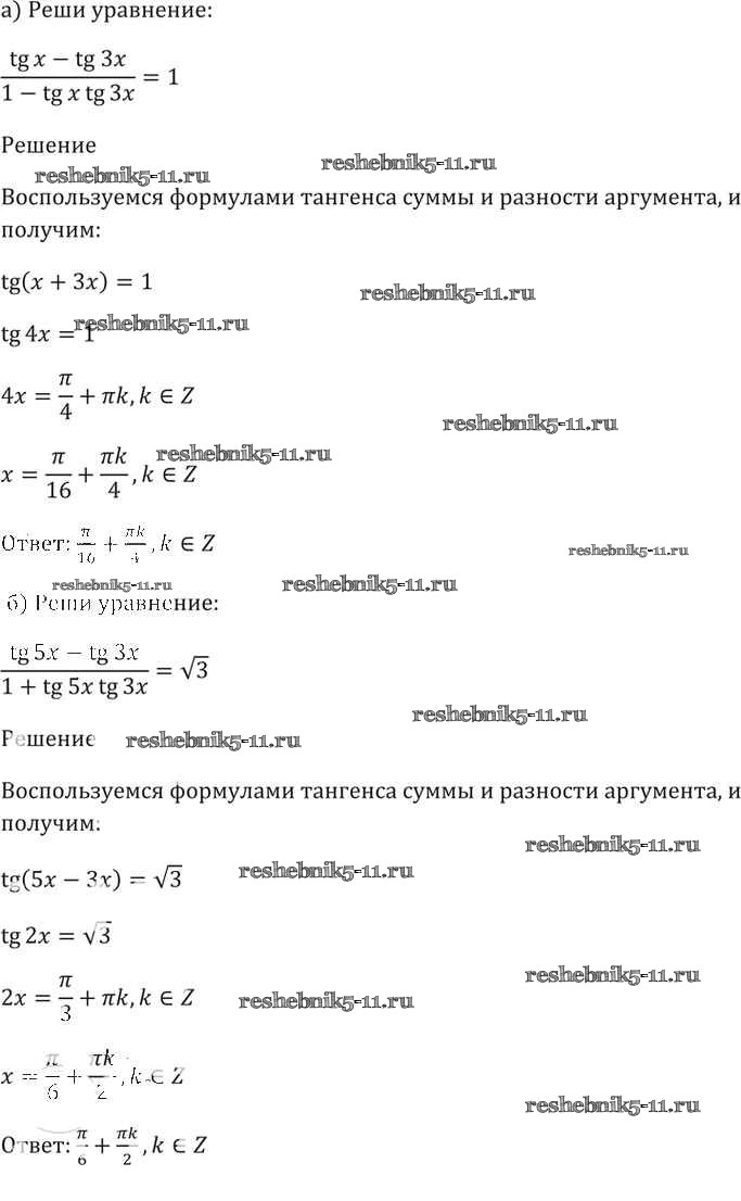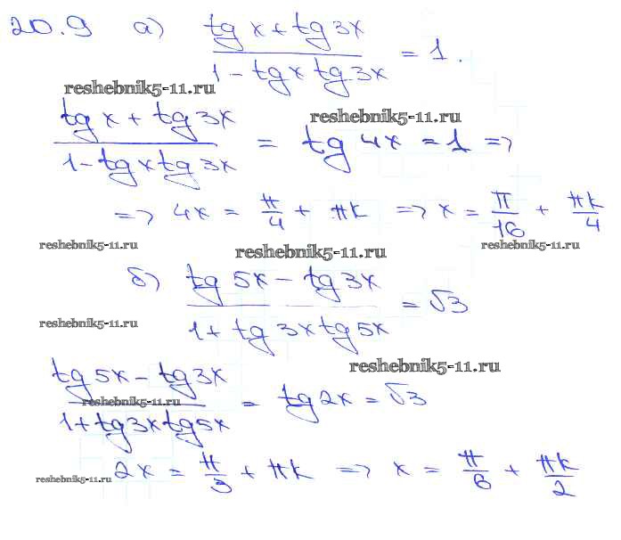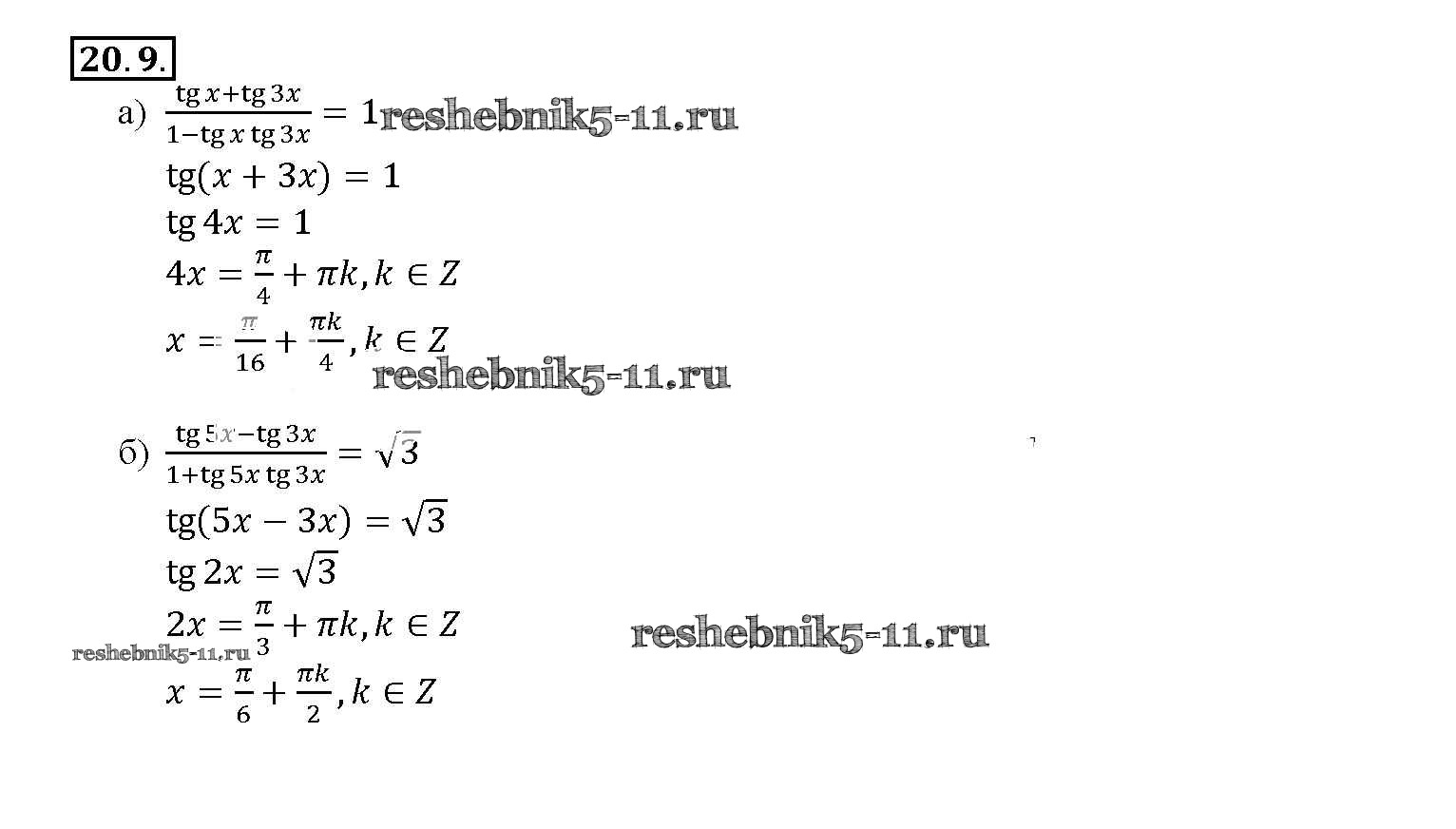 Готовая домашняя работа с ответами по Алгебре за 10, 11 класс Мордкович, Денищева, Корешкова, Мишустина, Семёнов, Тульчинская Задачник Базовый уровень Часть 2 Мнемозина 2015 ФГОС - §20. Тангенс суммы и разности аргументов 20. 9
