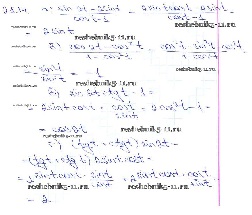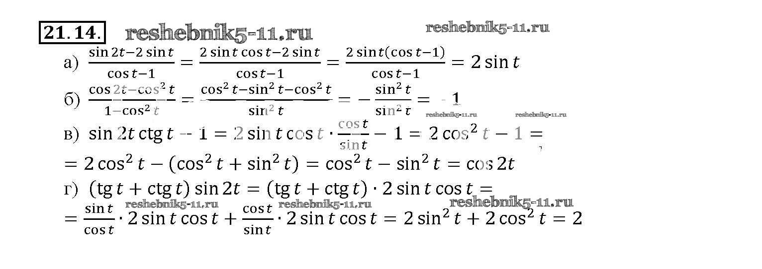 Готовая домашняя работа с ответами по Алгебре за 10, 11 класс Мордкович, Денищева, Корешкова, Мишустина, Семёнов, Тульчинская Задачник Базовый уровень Часть 2 Мнемозина 2015 ФГОС - §21. Формулы двойного аргумента 21. 14