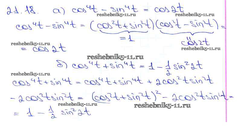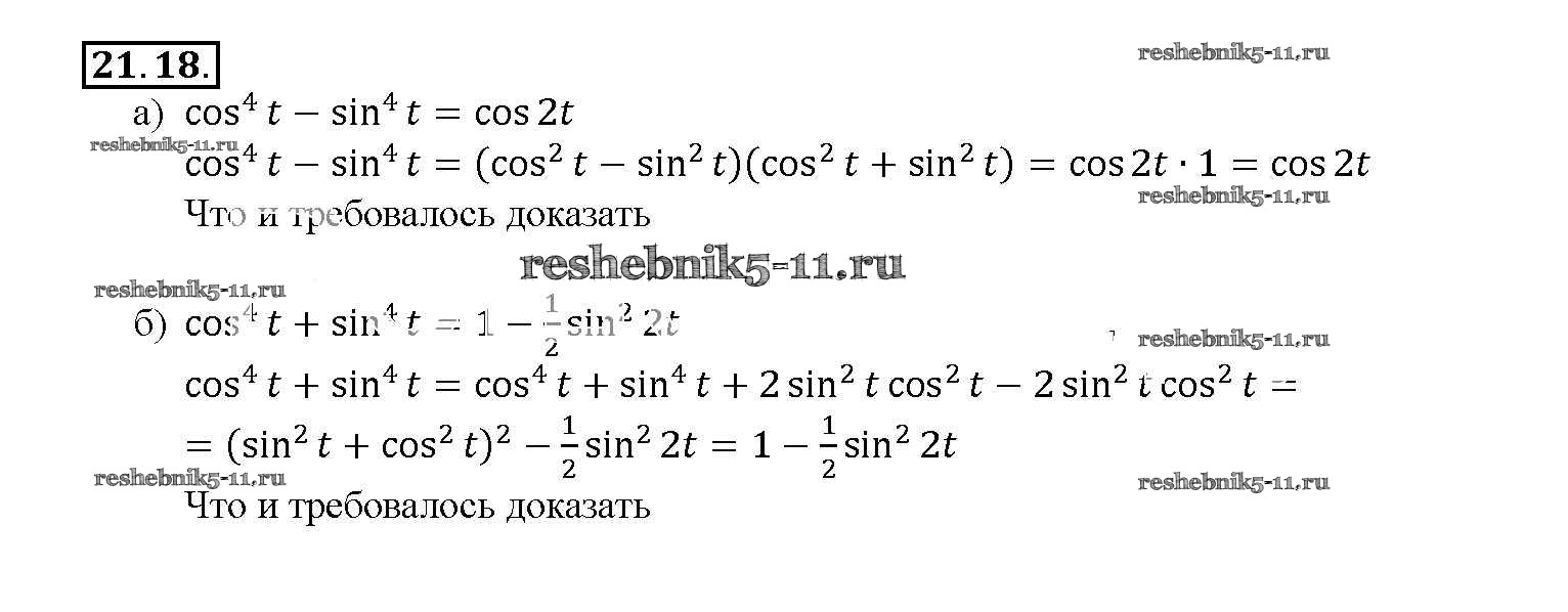 Готовая домашняя работа с ответами по Алгебре за 10, 11 класс Мордкович, Денищева, Корешкова, Мишустина, Семёнов, Тульчинская Задачник Базовый уровень Часть 2 Мнемозина 2015 ФГОС - §21. Формулы двойного аргумента 21. 18