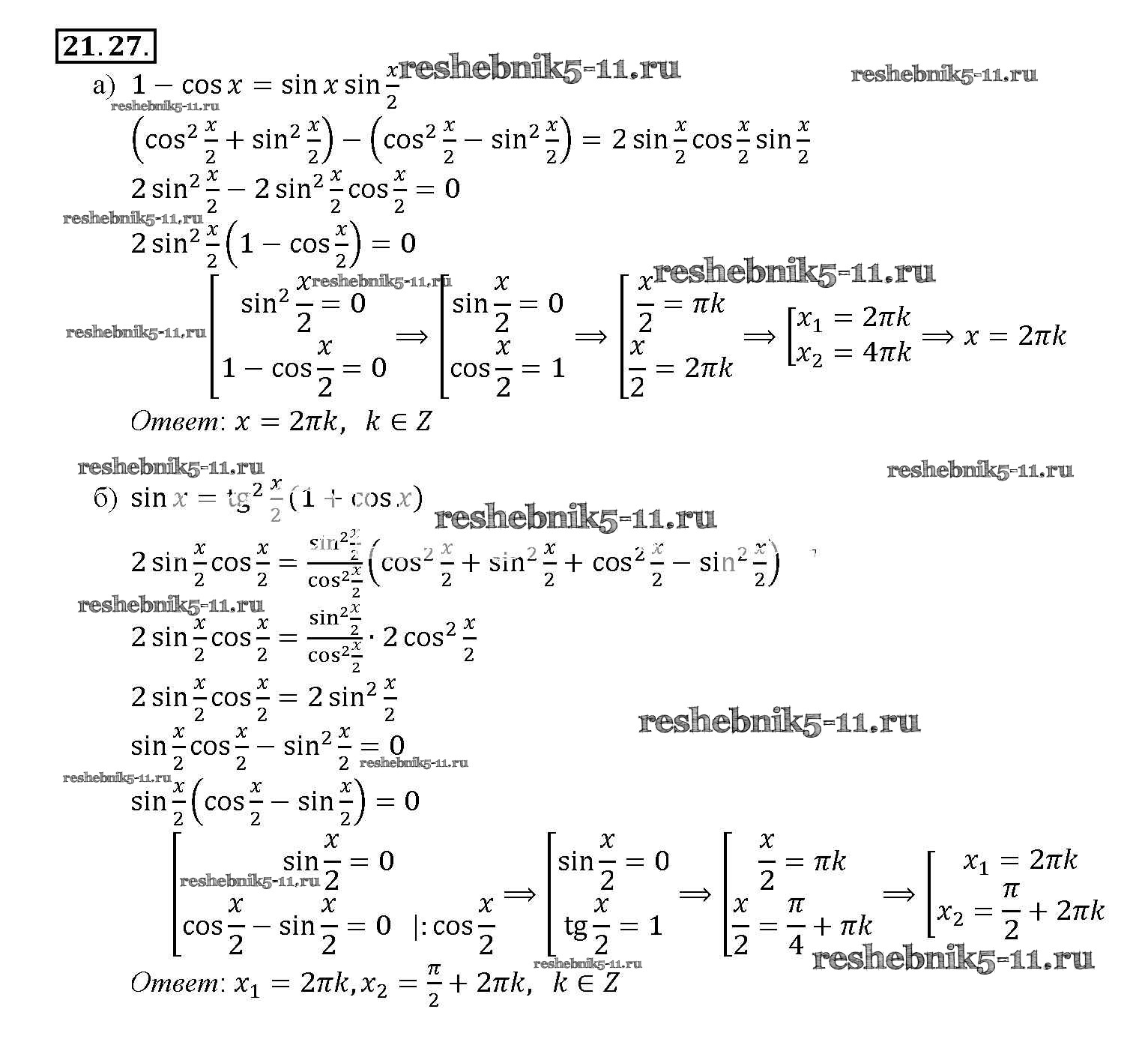 Алгебра за 10-11 класс Мордкович Задачник Базовый уровень Мнемозина §21 21. 27