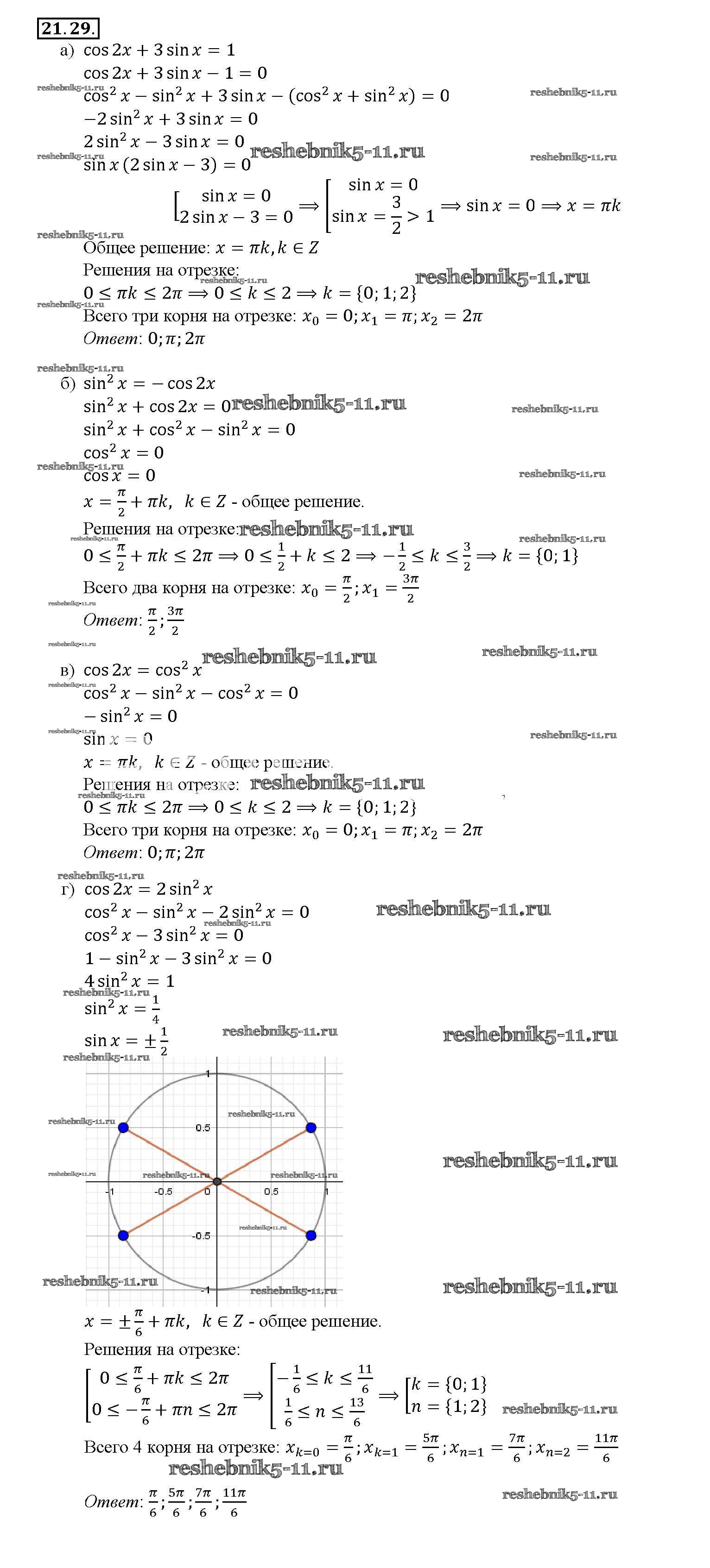 Готовая домашняя работа с ответами по Алгебре за 10, 11 класс Мордкович, Денищева, Корешкова, Мишустина, Семёнов, Тульчинская Задачник Базовый уровень Часть 2 Мнемозина 2015 ФГОС - §21. Формулы двойного аргумента 21. 29