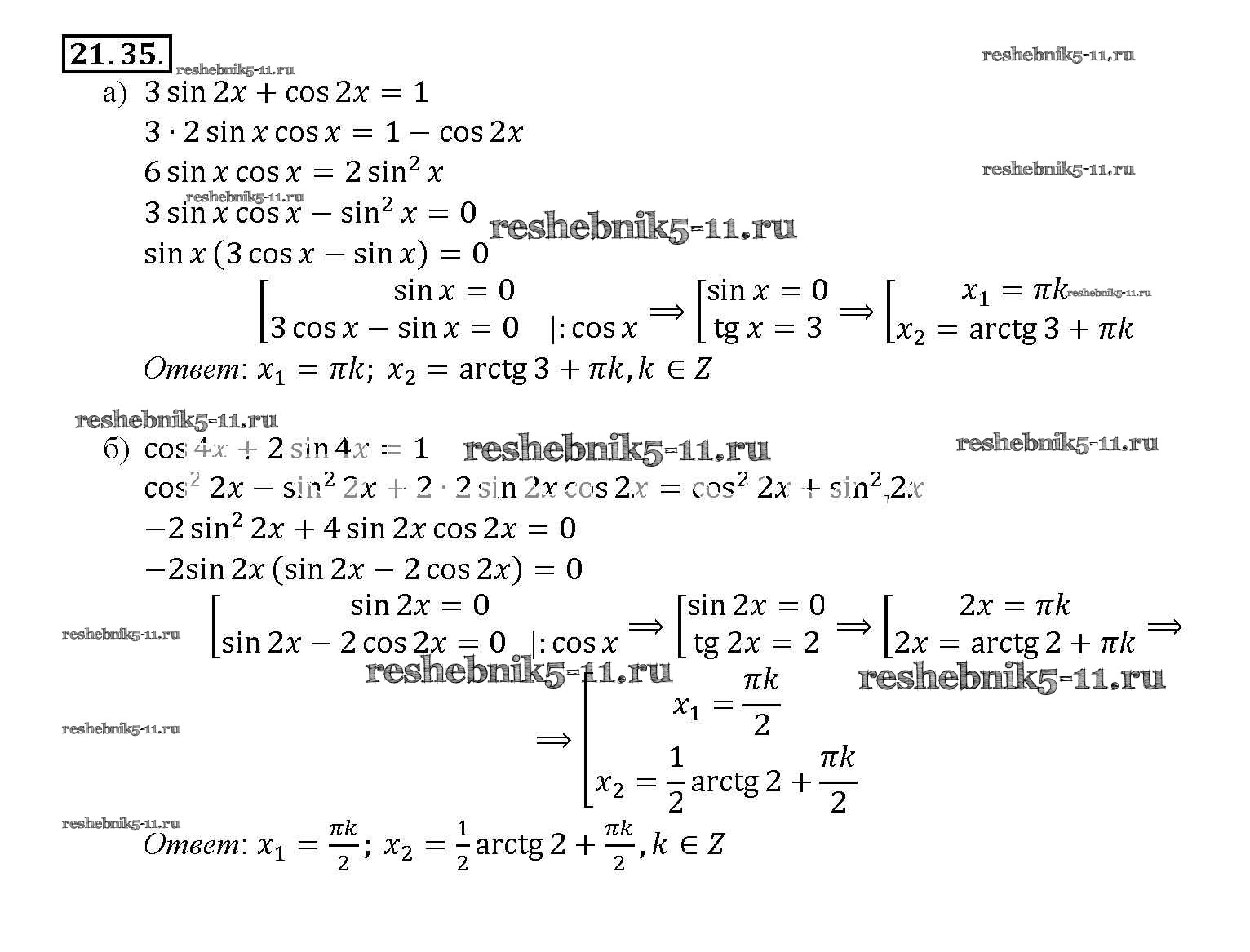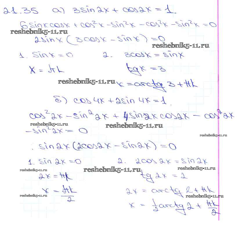 Готовая домашняя работа с ответами по Алгебре за 10, 11 класс Мордкович, Денищева, Корешкова, Мишустина, Семёнов, Тульчинская Задачник Базовый уровень Часть 2 Мнемозина 2015 ФГОС - §21. Формулы двойного аргумента 21. 35