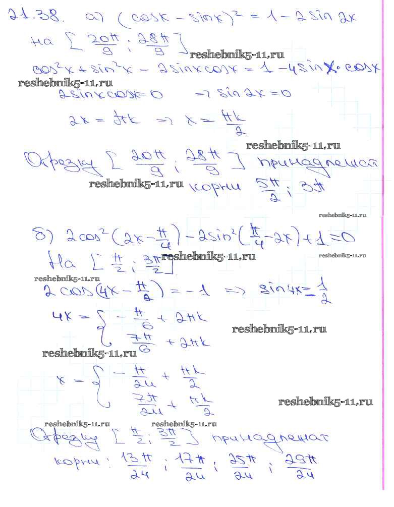 Алгебра за 10-11 класс Мордкович Задачник Базовый уровень Мнемозина §21 21. 38