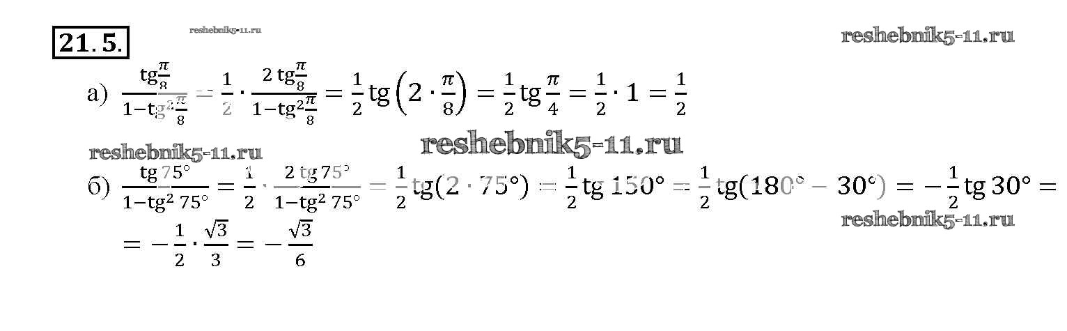 Готовая домашняя работа с ответами по Алгебре за 10, 11 класс Мордкович, Денищева, Корешкова, Мишустина, Семёнов, Тульчинская Задачник Базовый уровень Часть 2 Мнемозина 2015 ФГОС - §21. Формулы двойного аргумента 21. 5