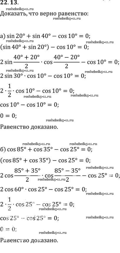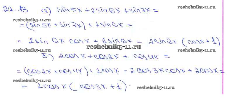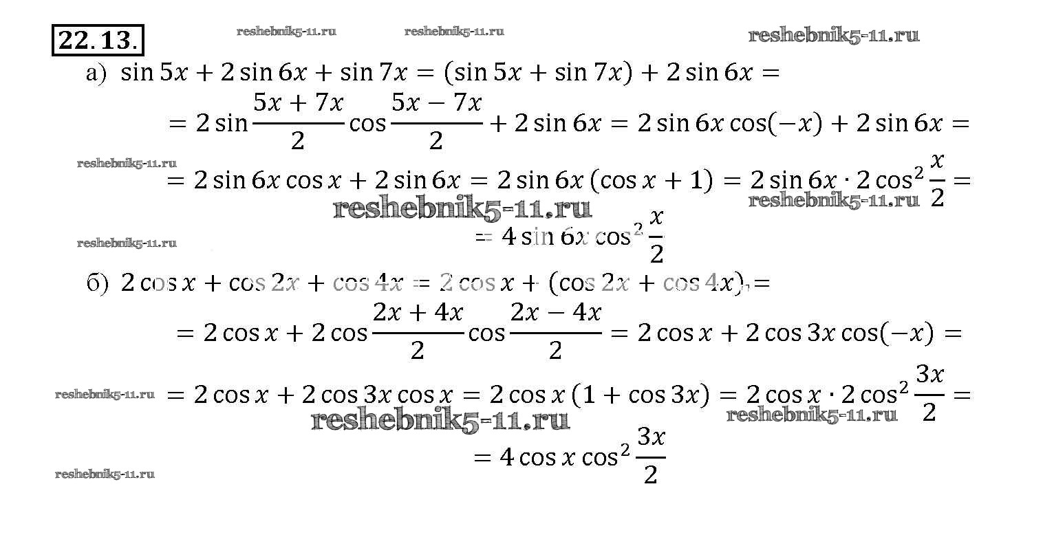 Готовая домашняя работа с ответами по Алгебре за 10, 11 класс Мордкович, Денищева, Корешкова, Мишустина, Семёнов, Тульчинская Задачник Базовый уровень Часть 2 Мнемозина 2015 ФГОС - §22. Преобразование суммы тригонометрических функций в произведения 22. 13