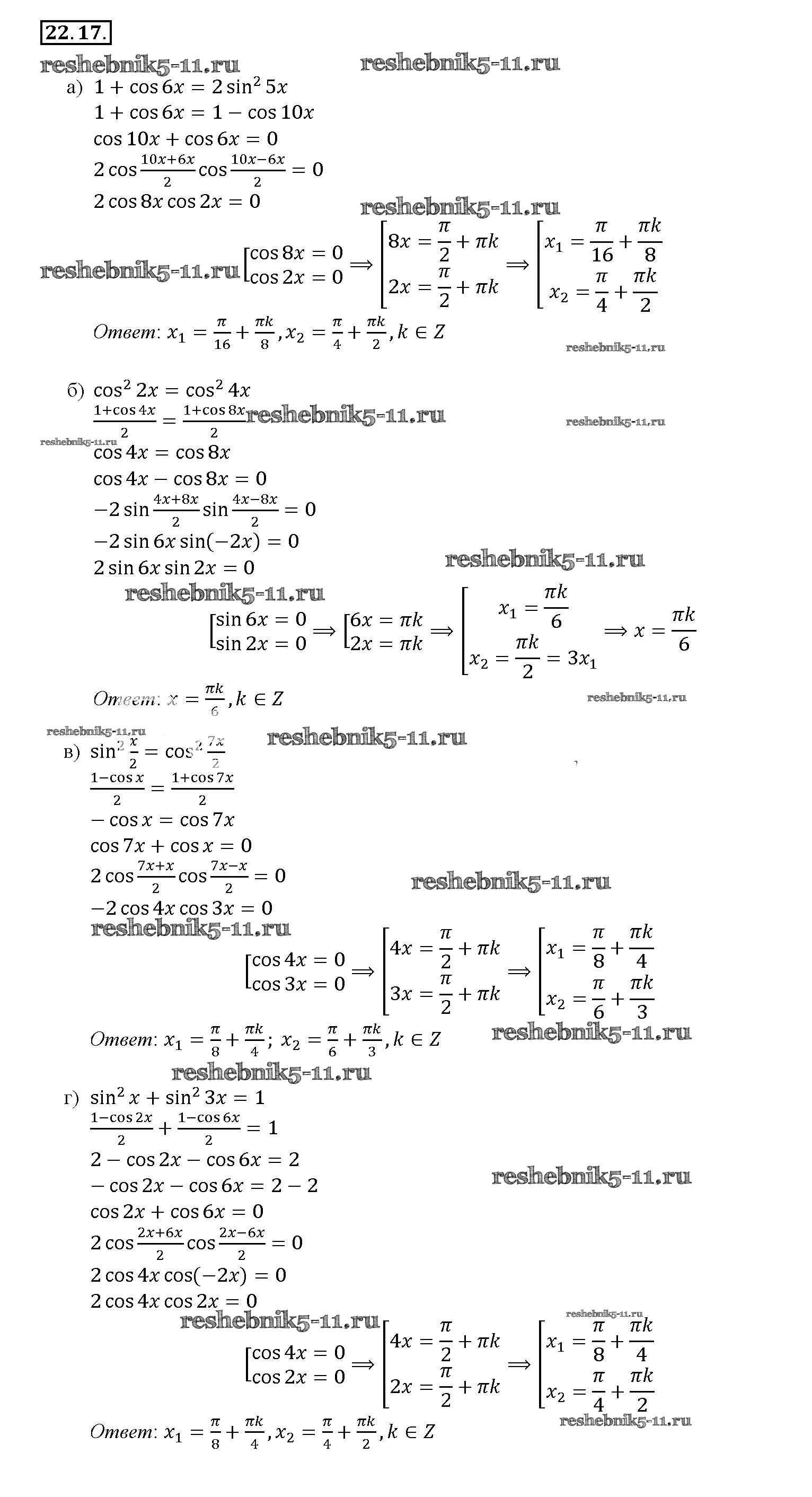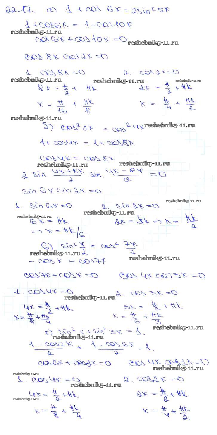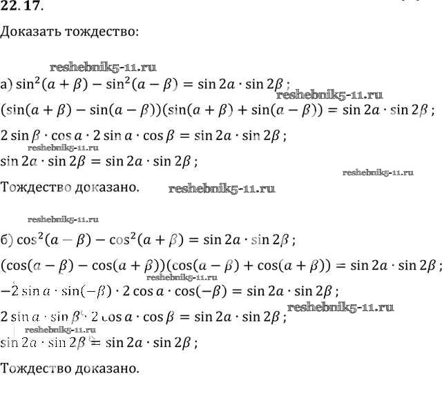 Готовая домашняя работа с ответами по Алгебре за 10, 11 класс Мордкович, Денищева, Корешкова, Мишустина, Семёнов, Тульчинская Задачник Базовый уровень Часть 2 Мнемозина 2015 ФГОС - §22. Преобразование суммы тригонометрических функций в произведения 22. 17