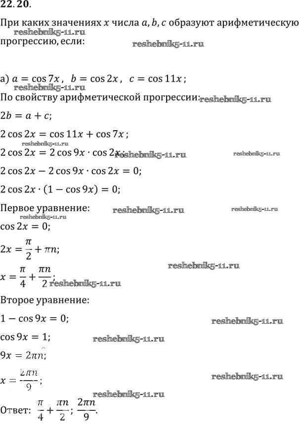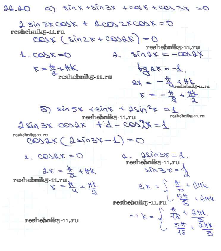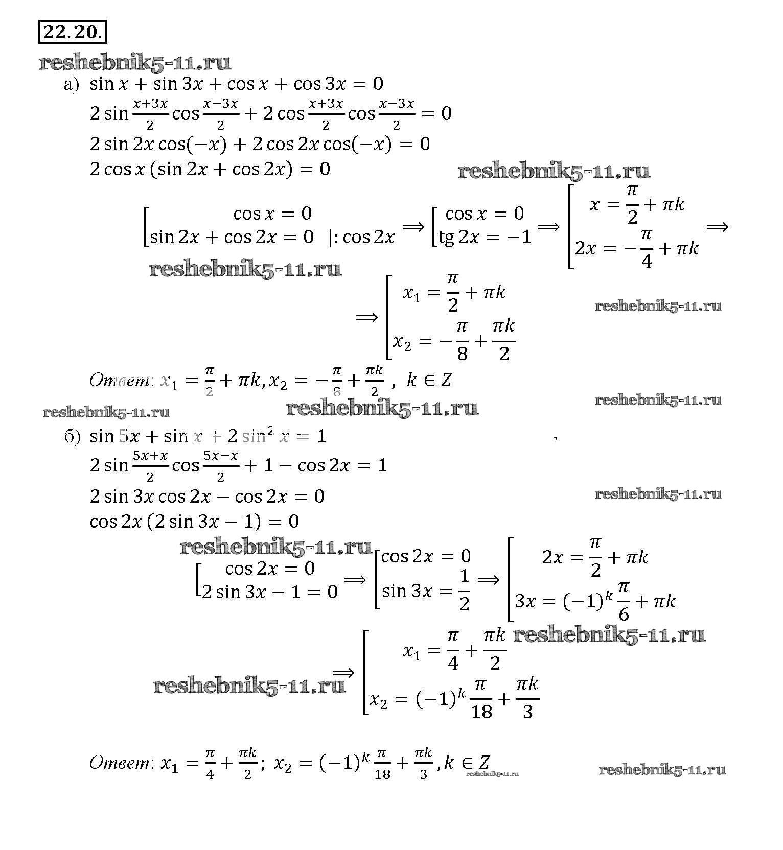 Готовая домашняя работа с ответами по Алгебре за 10, 11 класс Мордкович, Денищева, Корешкова, Мишустина, Семёнов, Тульчинская Задачник Базовый уровень Часть 2 Мнемозина 2015 ФГОС - §22. Преобразование суммы тригонометрических функций в произведения 22. 20