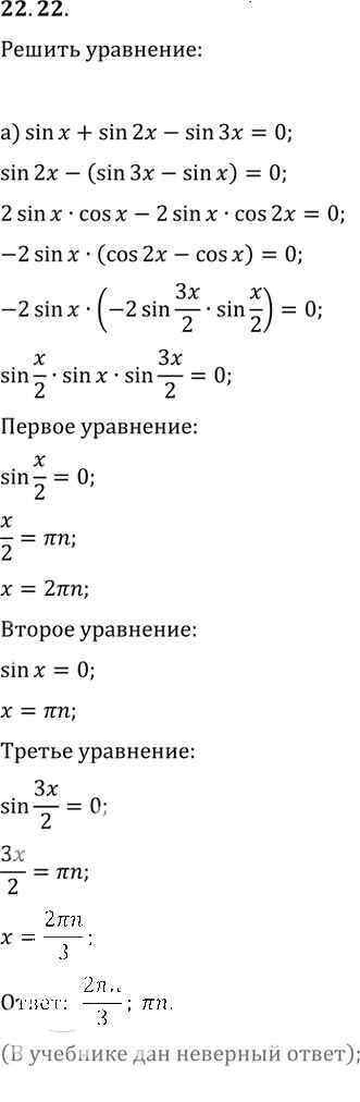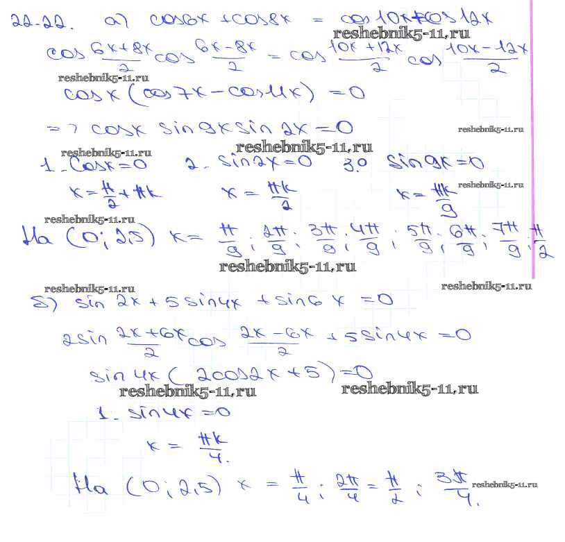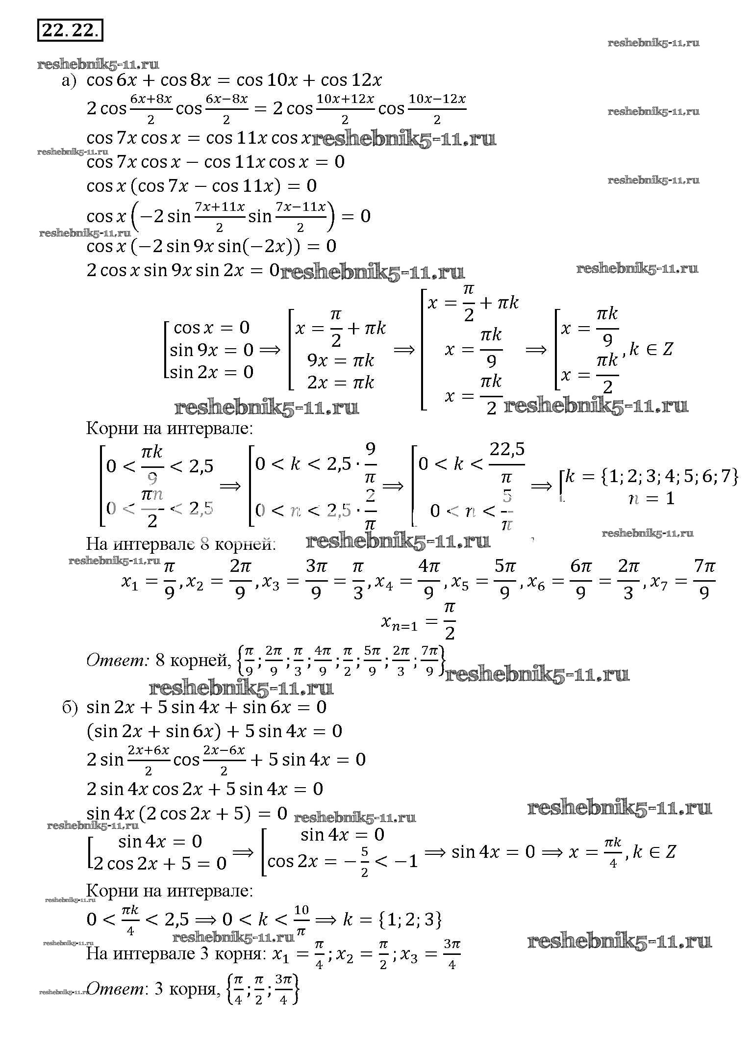 Готовая домашняя работа с ответами по Алгебре за 10, 11 класс Мордкович, Денищева, Корешкова, Мишустина, Семёнов, Тульчинская Задачник Базовый уровень Часть 2 Мнемозина 2015 ФГОС - §22. Преобразование суммы тригонометрических функций в произведения 22. 22