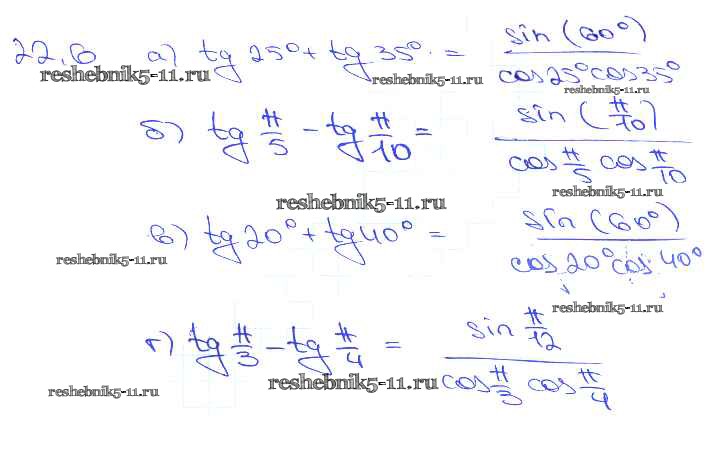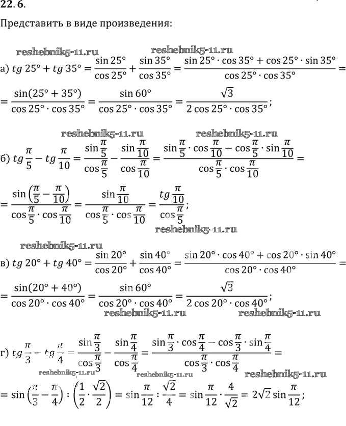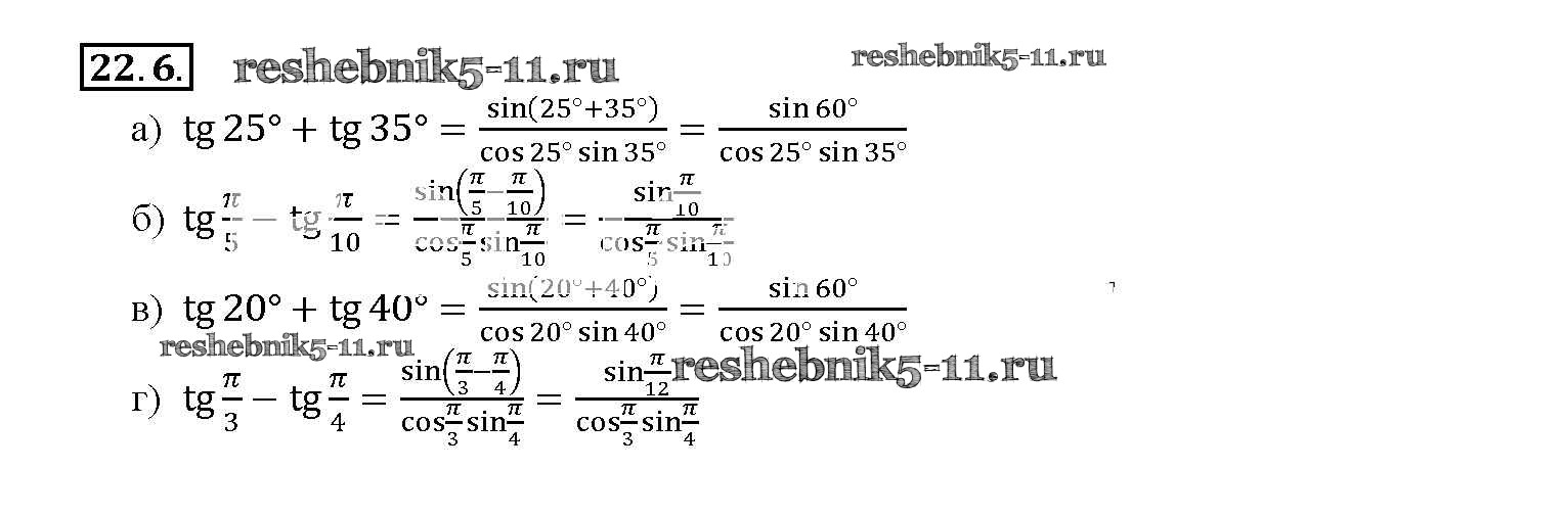 Готовая домашняя работа с ответами по Алгебре за 10, 11 класс Мордкович, Денищева, Корешкова, Мишустина, Семёнов, Тульчинская Задачник Базовый уровень Часть 2 Мнемозина 2015 ФГОС - §22. Преобразование суммы тригонометрических функций в произведения 22. 6