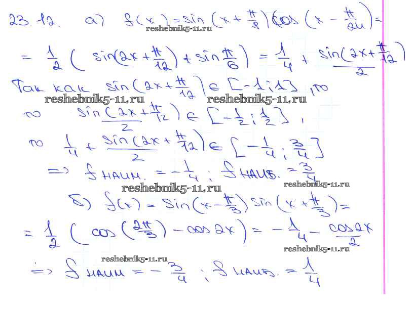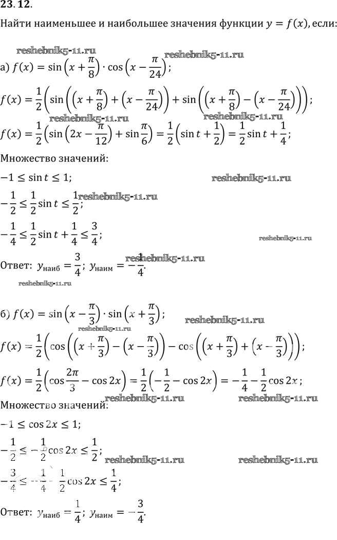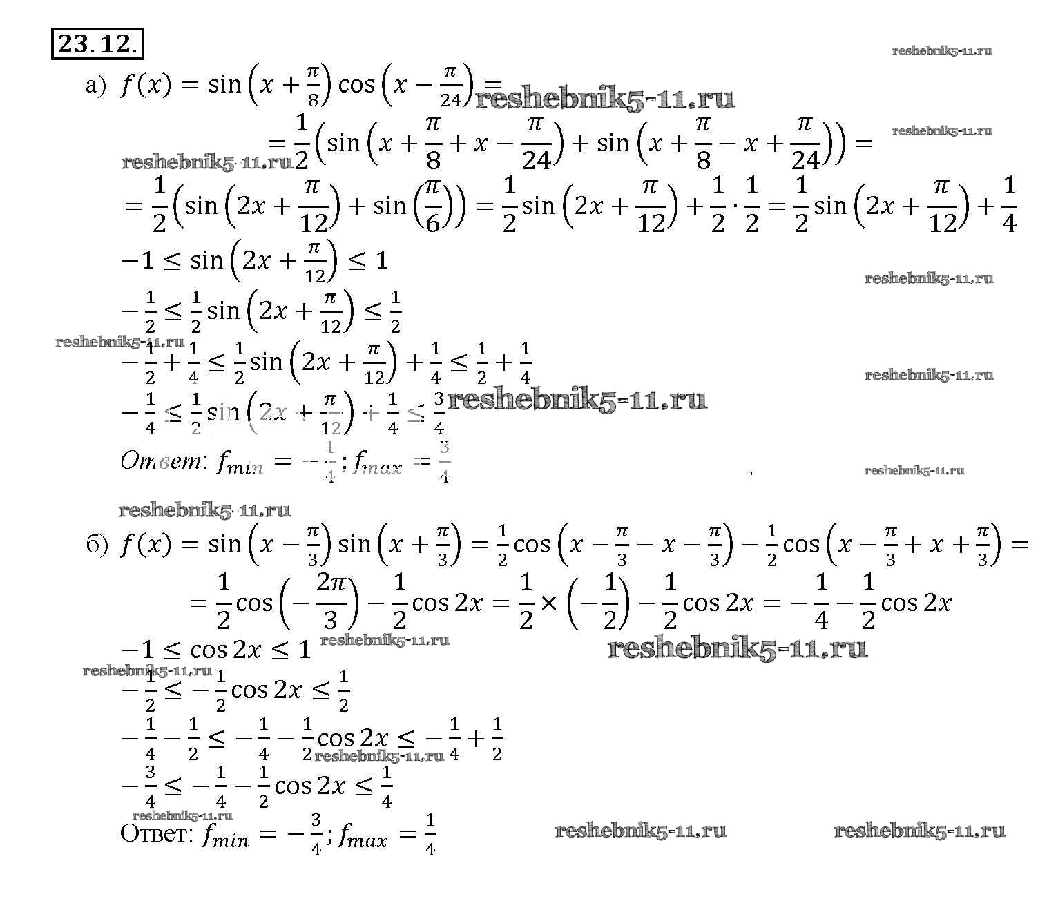 Готовая домашняя работа с ответами по Алгебре за 10, 11 класс Мордкович, Денищева, Корешкова, Мишустина, Семёнов, Тульчинская Задачник Базовый уровень Часть 2 Мнемозина 2015 ФГОС - §23. Преобразование произведений тригонометрических функций в суммы 23. 12
