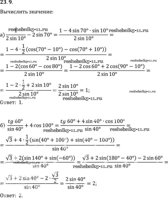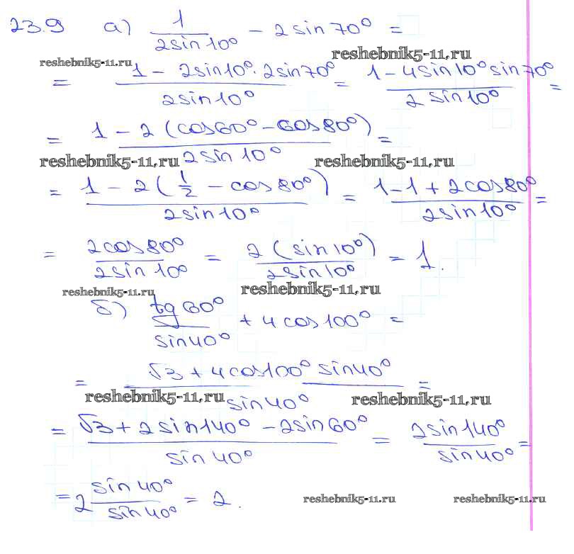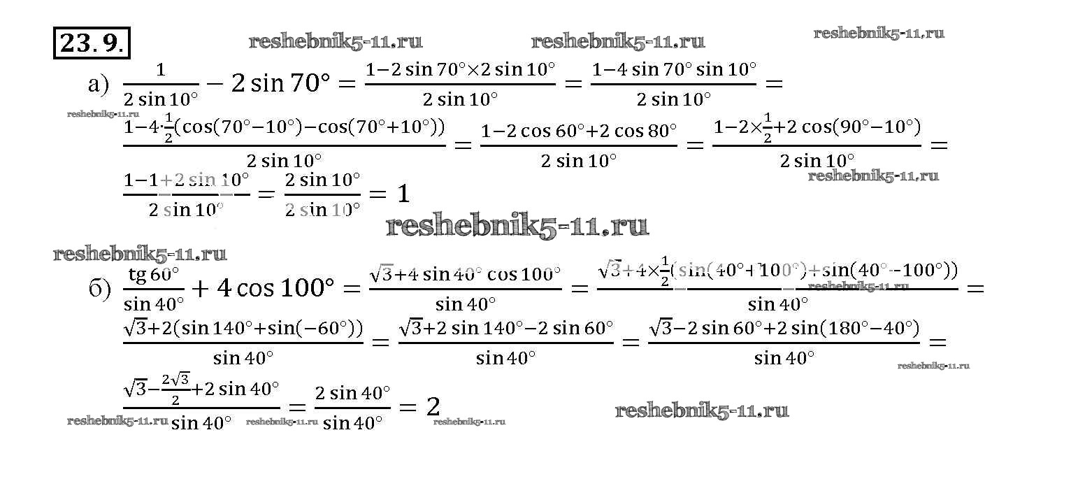Готовая домашняя работа с ответами по Алгебре за 10, 11 класс Мордкович, Денищева, Корешкова, Мишустина, Семёнов, Тульчинская Задачник Базовый уровень Часть 2 Мнемозина 2015 ФГОС - §23. Преобразование произведений тригонометрических функций в суммы 23. 9