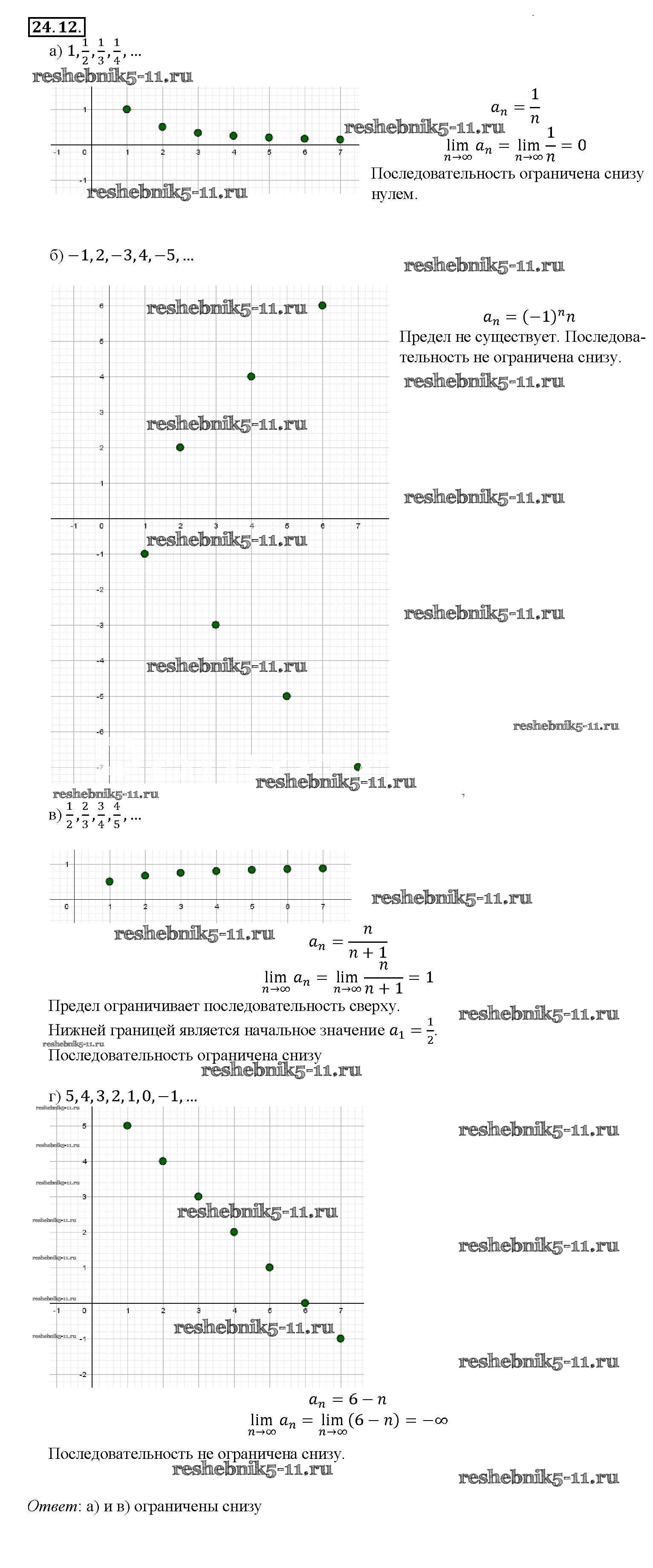 Готовая домашняя работа с ответами по Алгебре за 10, 11 класс Мордкович, Денищева, Корешкова, Мишустина, Семёнов, Тульчинская Задачник Базовый уровень Часть 2 Мнемозина 2015 ФГОС - §24. Предел последовательности 24. 12