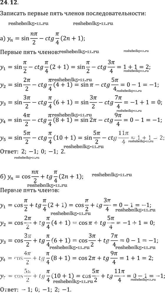 Алгебра за 10-11 класс Мордкович Задачник Базовый уровень Мнемозина §24 24. 12