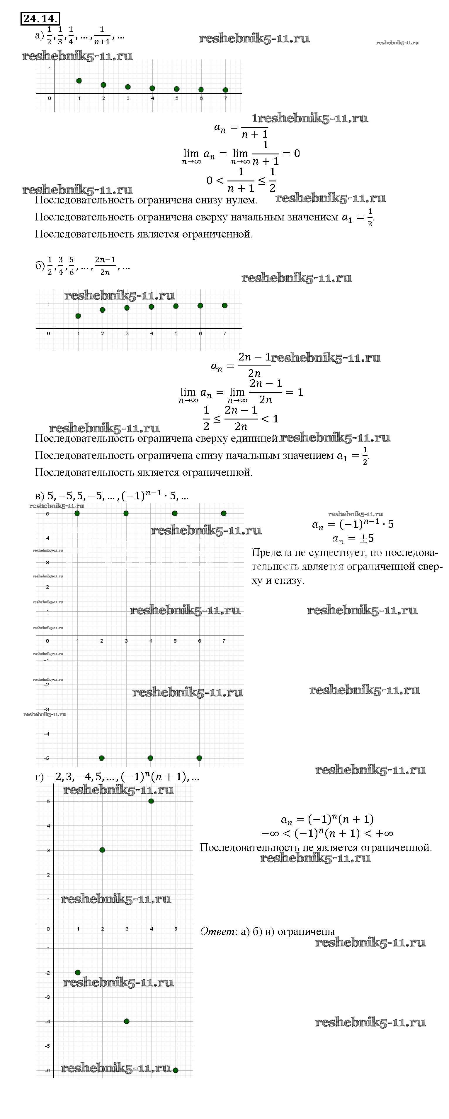 Готовая домашняя работа с ответами по Алгебре за 10, 11 класс Мордкович, Денищева, Корешкова, Мишустина, Семёнов, Тульчинская Задачник Базовый уровень Часть 2 Мнемозина 2015 ФГОС - §24. Предел последовательности 24. 14